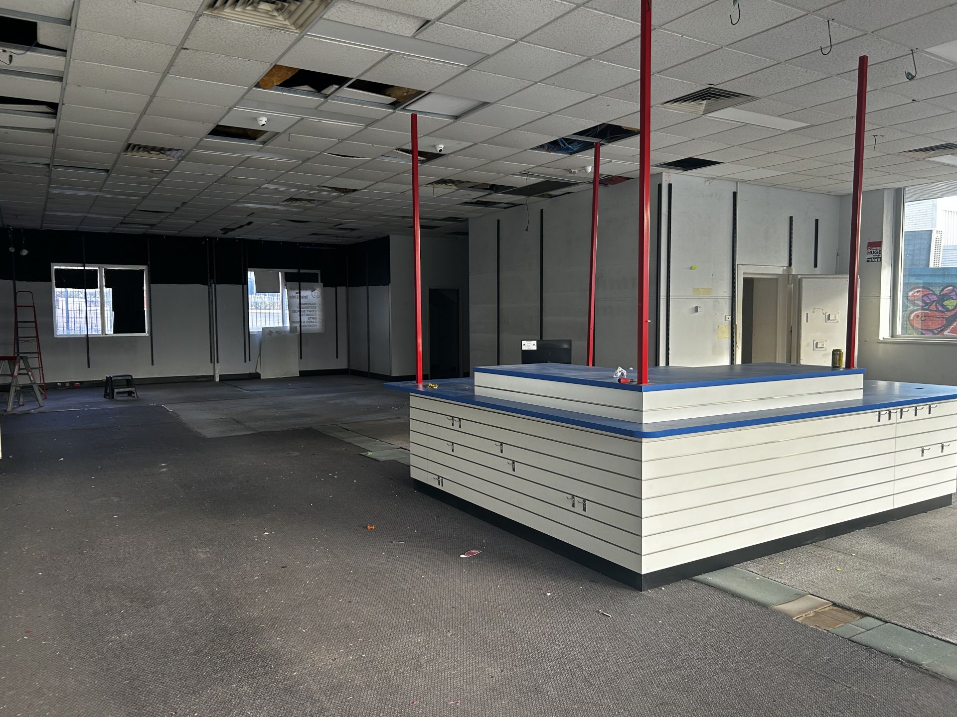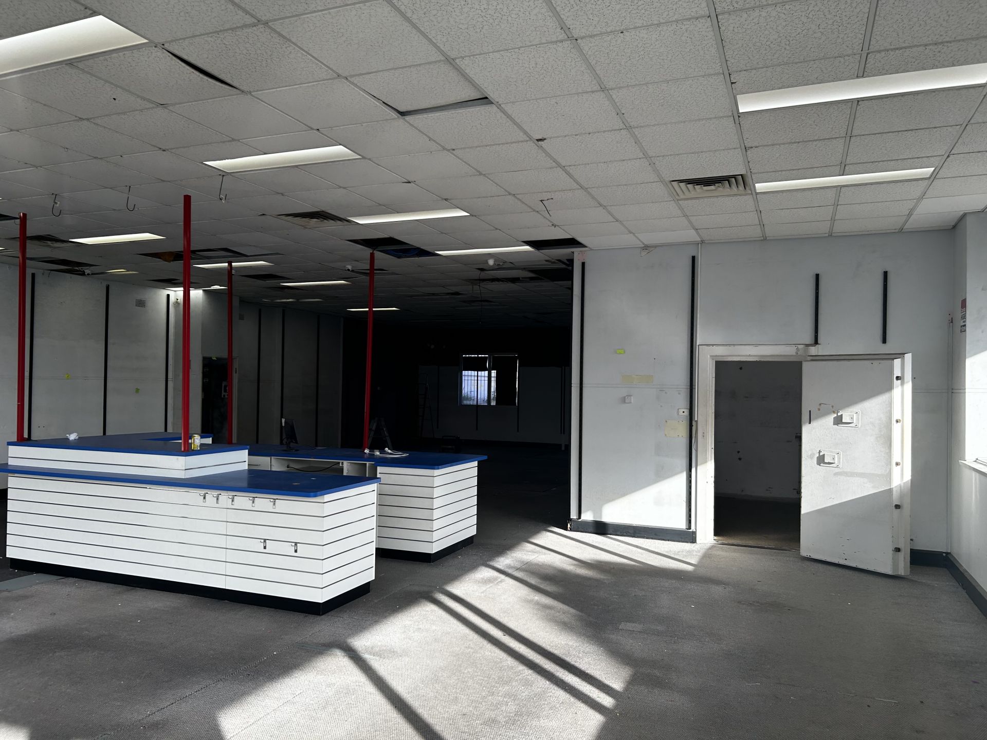- Used to be a bank. Has unique walk in safe room