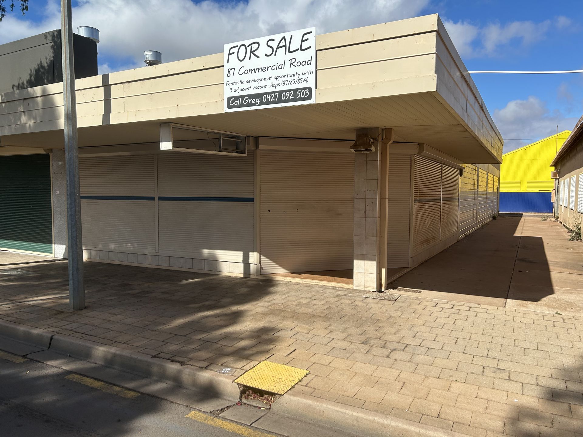 Located at the top end of Commercial Road, this shop has been a great retail outlet over the years, primarily being 'Thwaites' and Harry's Menswear' and up until recently a children's wear shop. The retail showroom area is approximately 168 square metres, being 24 metres long and 7 metres wide, with a store room/kitchen of 5 metres by 7 metres, with access from the side alley. The front of the shop has double glass doors for entering and a glass frontage for display purposes, and the windows are protected by roller shutters, whilst the building is serviced by an air conditioner and a toilet at the rear. This is a great opportunity to enter the retail market or transform the premises into a great office space.
