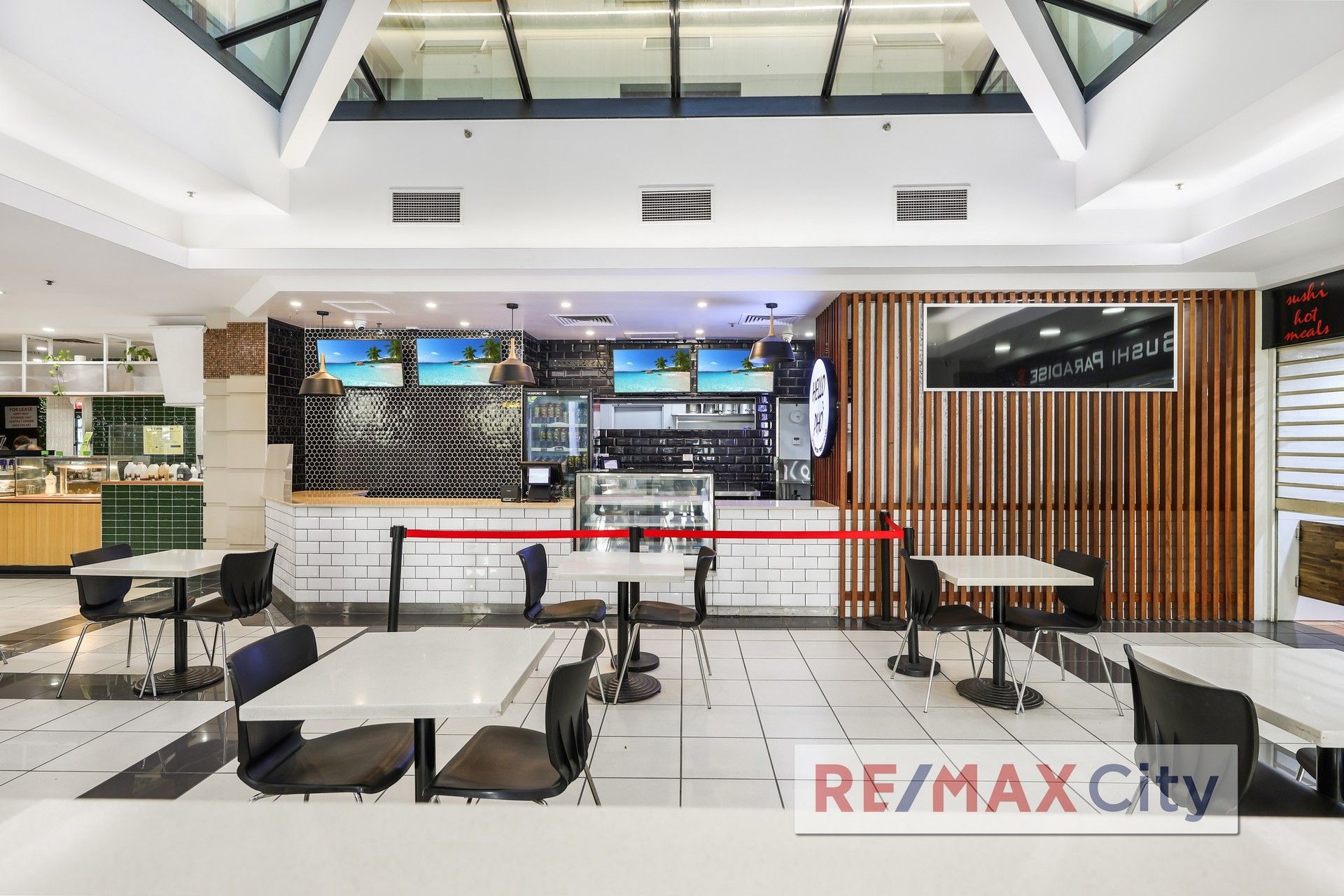 - Generous shared food court customer seating