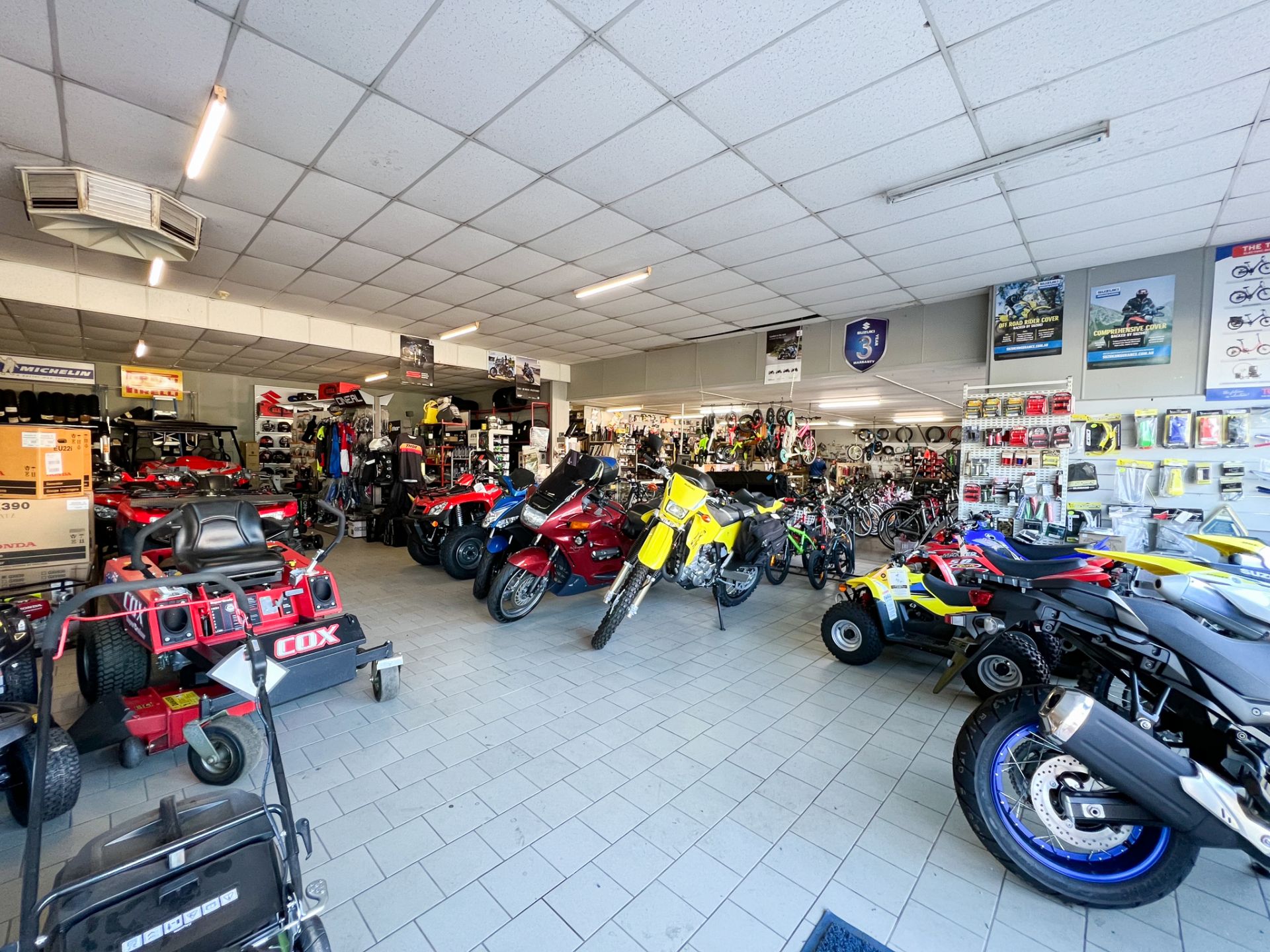 With 60 years of success beneath its belt, this business offers both retail and service divisions. Selling great brands including Suzuki Motorcycles, Kymco, Honda power equipment, Masport, Atom Power lite, Cox Power equipment and mowers, as well as Apollo, Radius, Scott, Meridia, TEBCO bicycles & electric bikes, Envy Scooters, and all the spare parts and accessories needed. The fully functioning workshop has staff willing to stay on for the right buyer, providing any serious buyer with the confidence to continue growing this healthy business into the future.