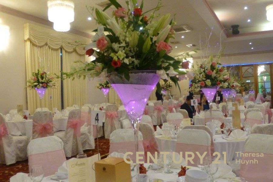 This Clayton Road property is easily accessed from the Dingley bypass or Heatherton Rd and has plenty of onsite parking at the rear. A sizable building consisting of a reception area, a separate lobby, 2 sets of male and female toilets, office, storage rooms and a large fully equipped kitchen. The venue comfortable accommodates 700 guests for dining and dancing with an additional function area available. Two change rooms with bathroom facilities are available on an upper floor providing private change facilities for the wedding party or as required by the client.