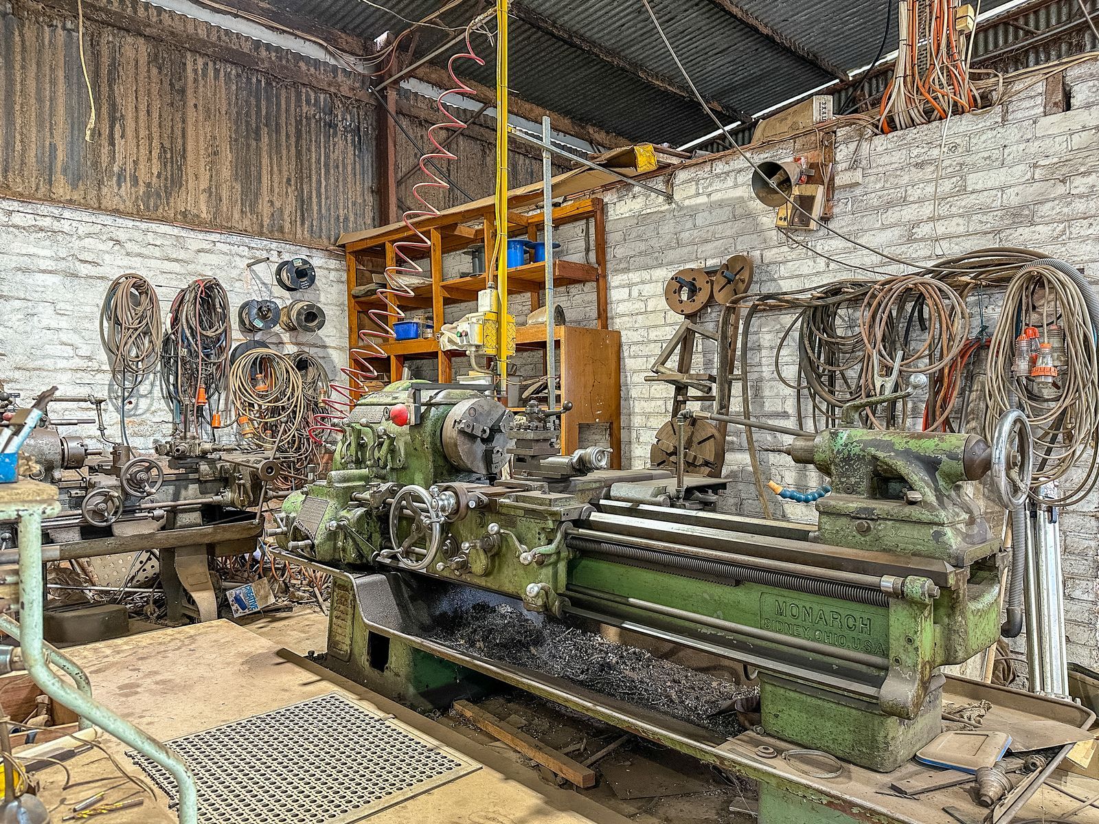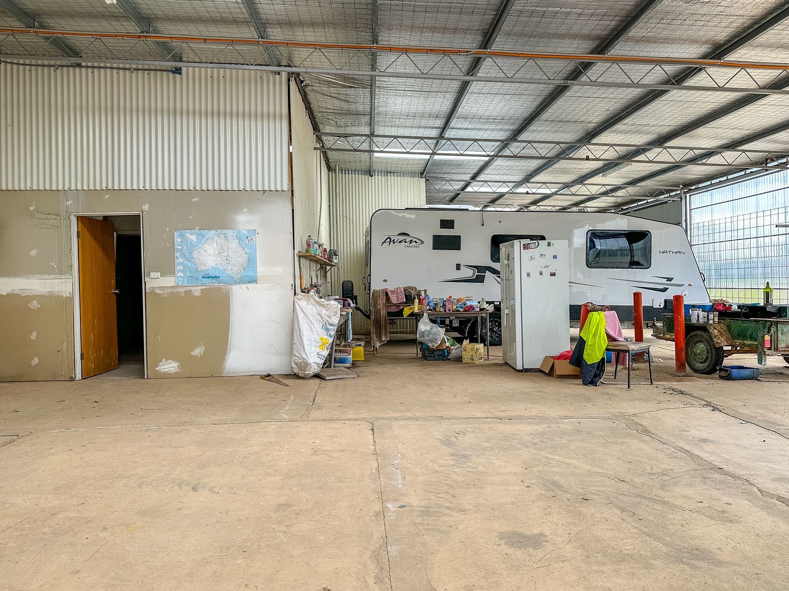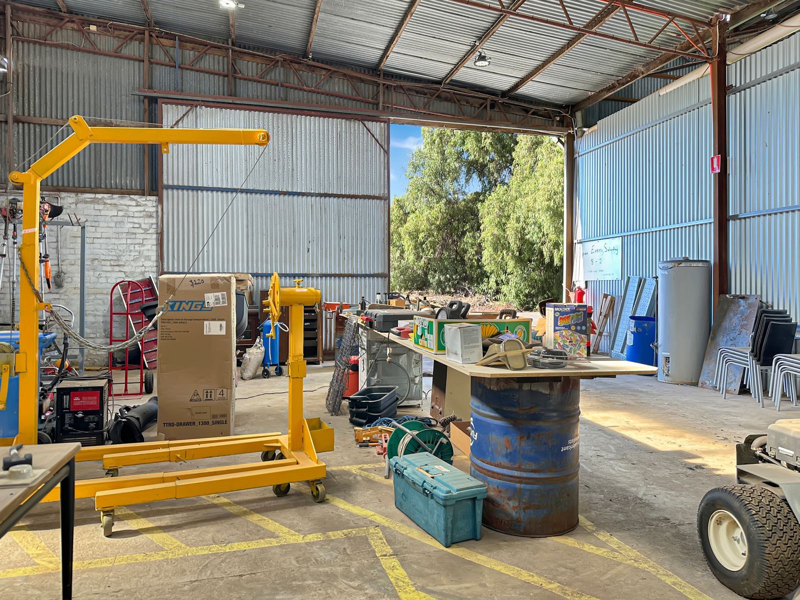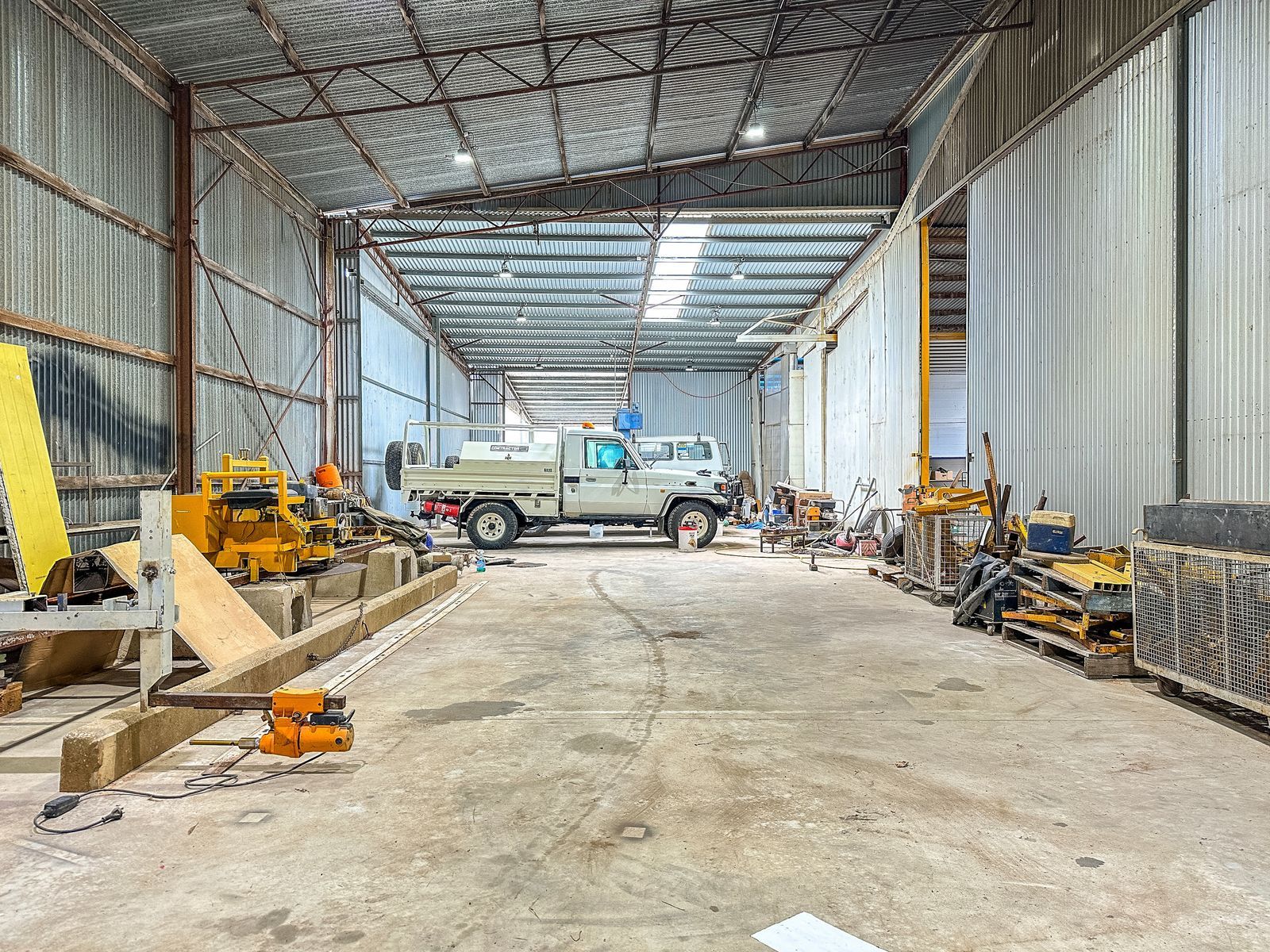 Additional features include: three phase power to main and outdoor shed, an office/foyer, a bathroom with a toilet and urinal, a wash bay, and a mechanic’s pit. Fully serviced.