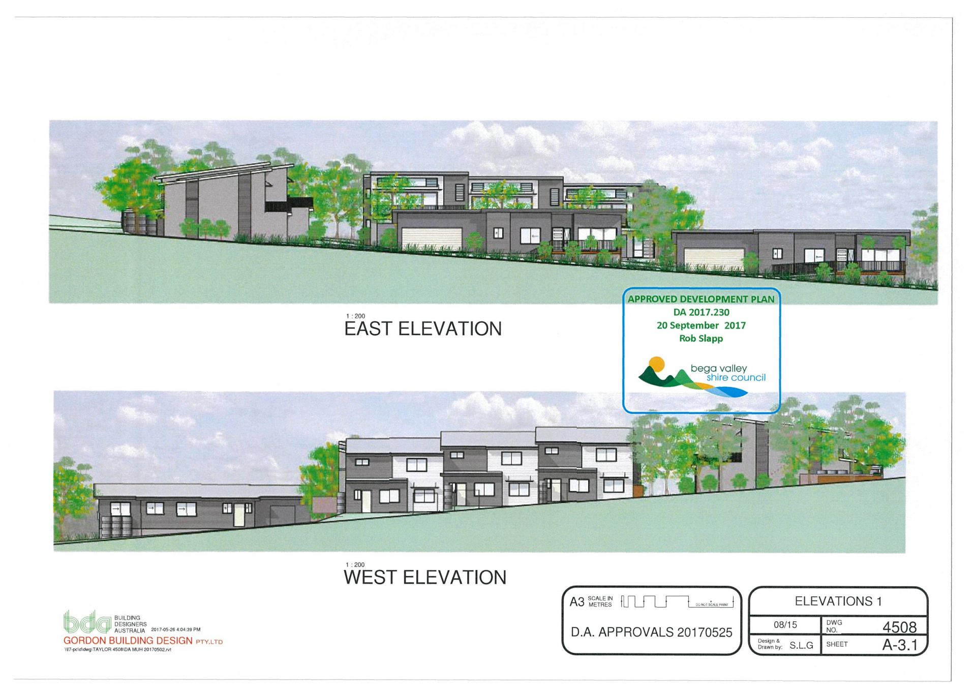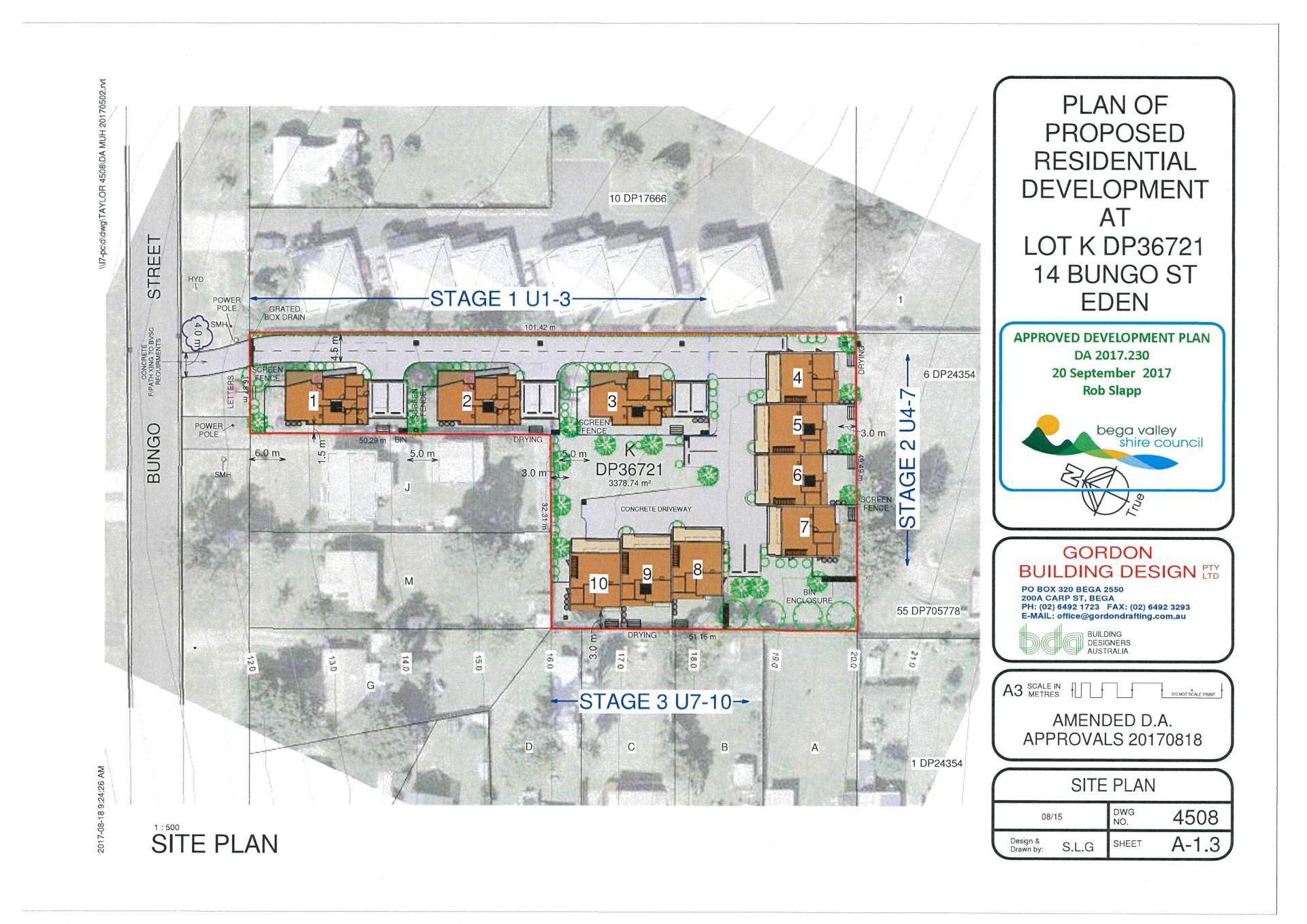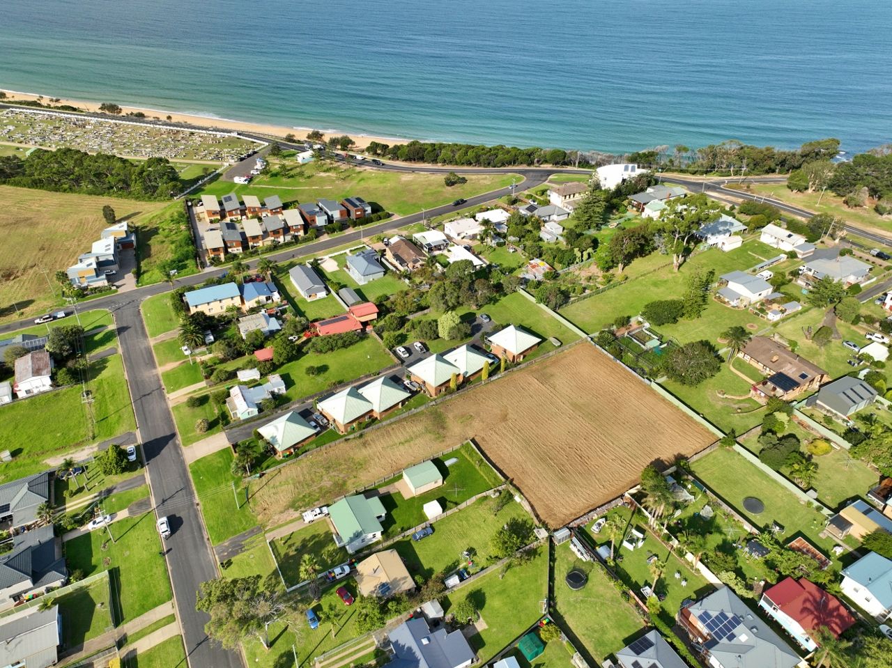 The site extends at the rear to a large gently sloping fully fenced "paddock". The DA approval allows for 10 apartments comprising 3 x single storey 2 bedroom villas with open plan living, ensuite & double garage. The remainder comprise 7 x 2 storey 3 bedroom apartments with open plan living to deck areas, ensuite & double garages. Approved for development in 3 stages, the design takes full advantage of the sites solar aspect and views which span across Lake Curalo to north Aslings Beach & Bay.