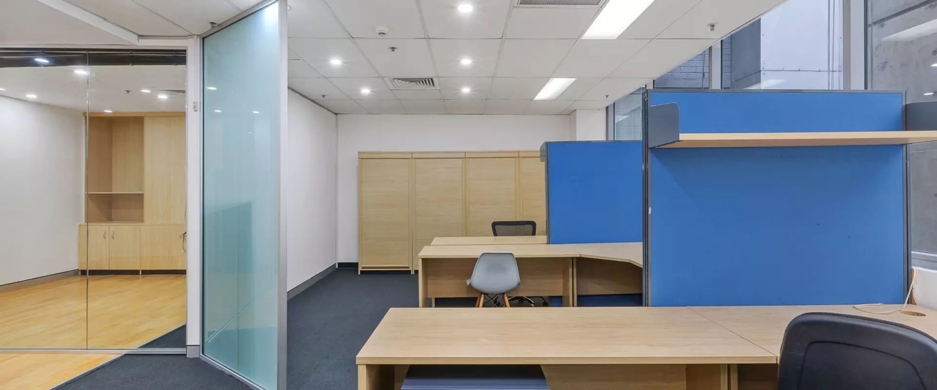 - Fitted suite with reception area, boardroom, and open-plan area