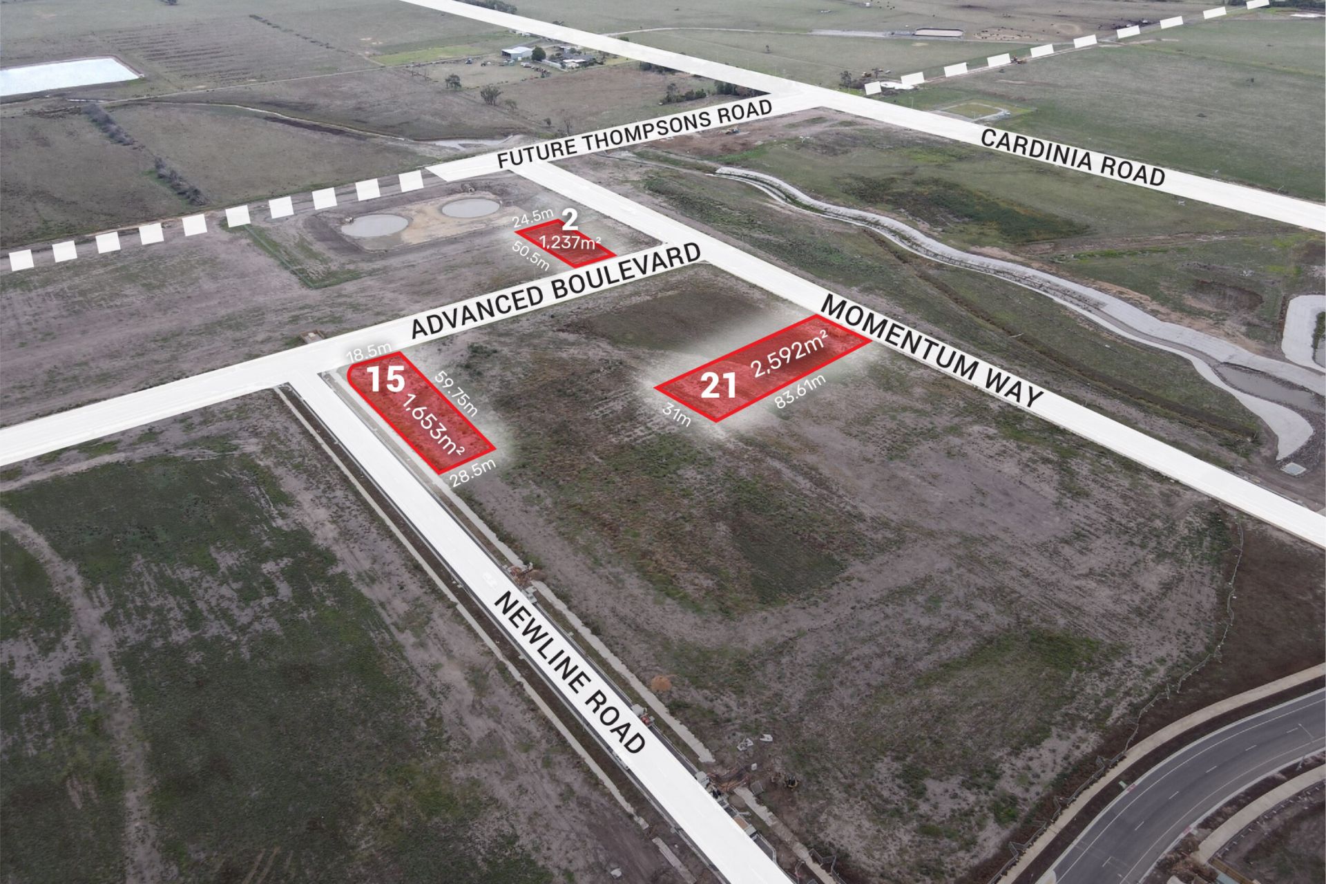 Ranging from 1,237m² to 2,592m² these lots are in Stage 1 of the renowned South Point estate. South Point is a premium master planned industrial estate with an emphasis on green spaces, Architecture and occupant amenity. A variety of lots have now been settled and building activity is underway. The Cardinia Road precinct is undergoing massive transformation with Kaduna Business Park to the North, ESR to the North East and Kaduna residential estate to the West. Easily accessible to the Monash Freeway this location will in time also benefit from direct access to Thompsons Road.
