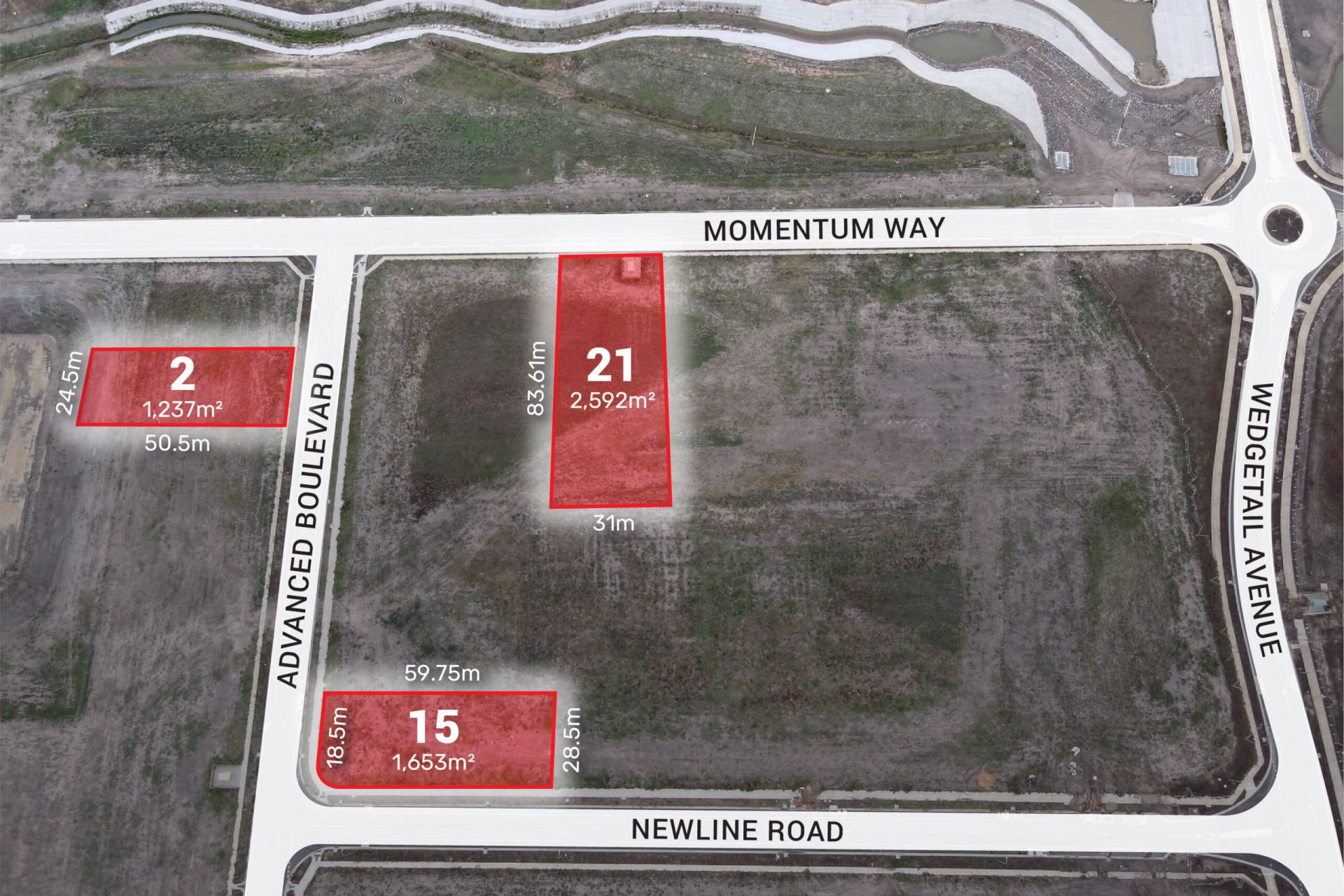 Lot 15 is 1,653m² faces East and South being a corner allotment