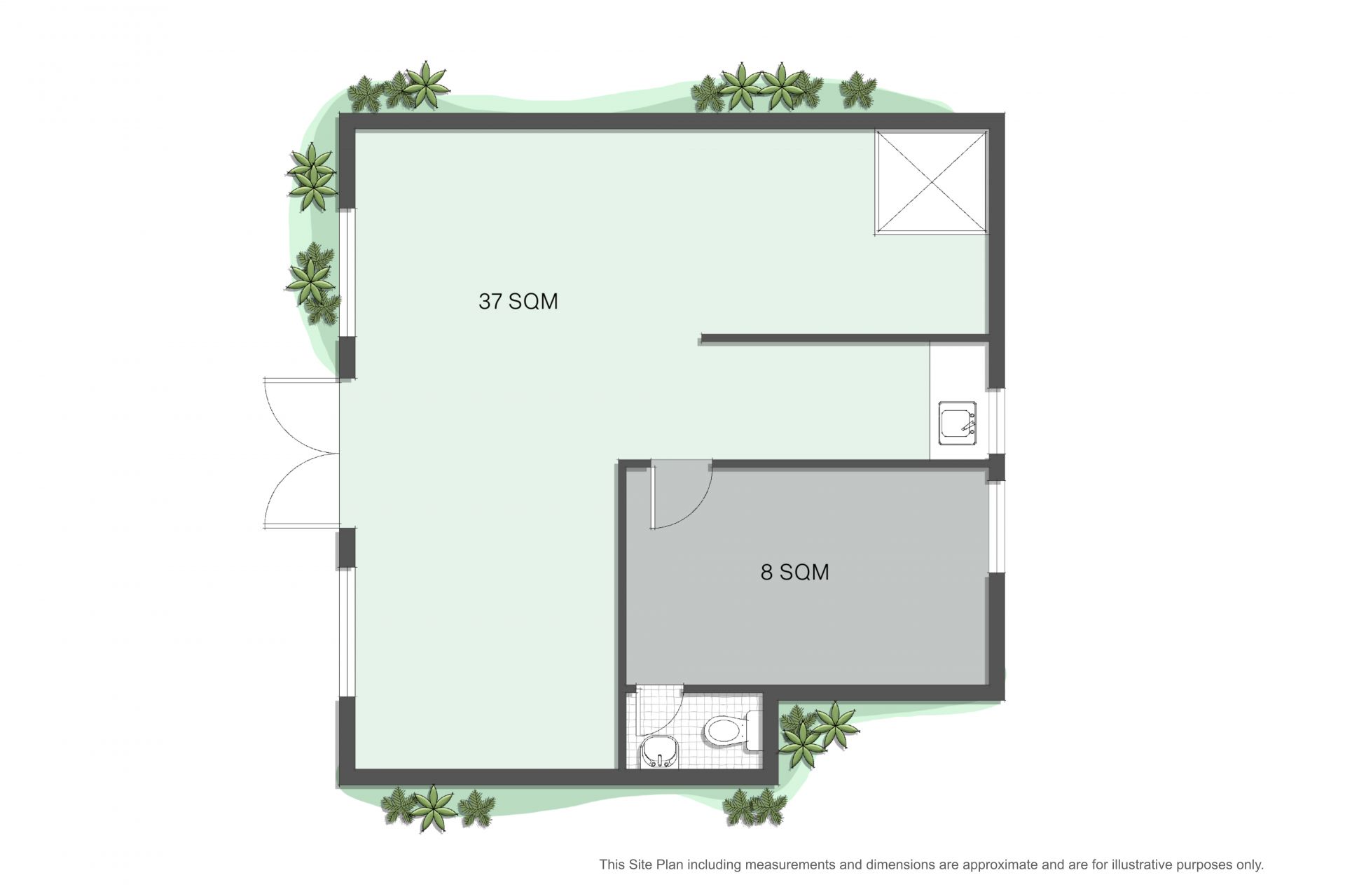 • 45m² commercial space with flexible layout (three divider walls)