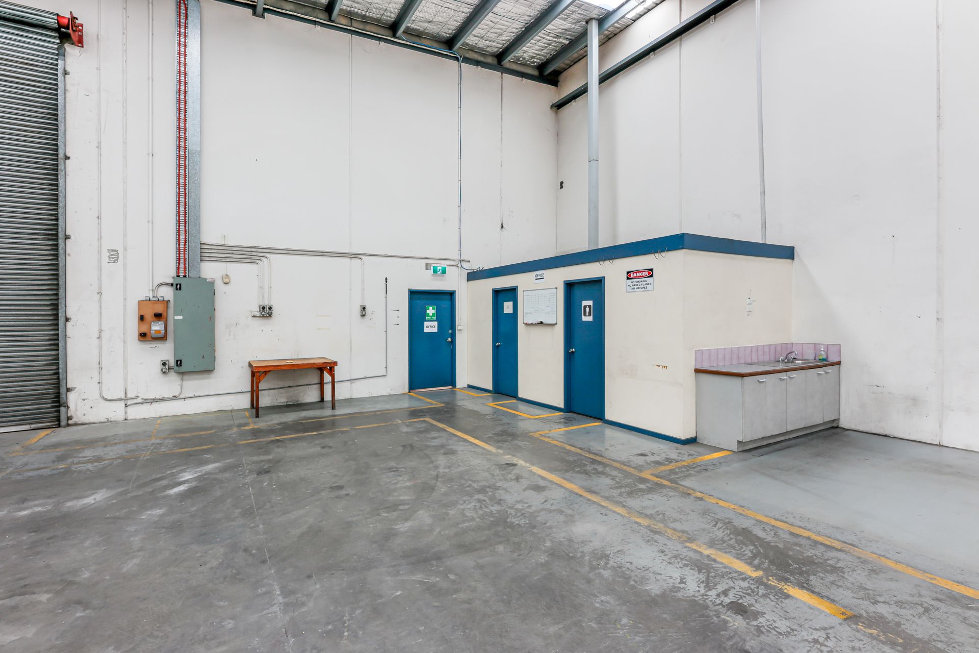 Adding to the functionality are thoughtfully designed, air-conditioned, tiled offices, which provide a professional workspace within the warehouse setting. The wide driveway, 10 on-site car parks, and secure fencing with gated access ensure easy vehicle maneuverability and peace of mind. For buyers or tenants considering both warehouses, internal connectivity can be established between them (STC), providing operational expansion and improved workflow.