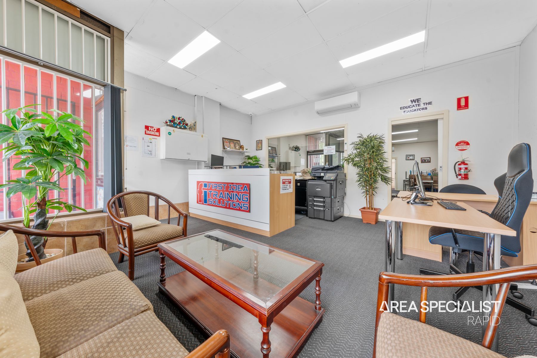 • Efficient Climate Control: Split system heating and cooling units in both the reception and main room ensure a pleasant environment for staff and customers