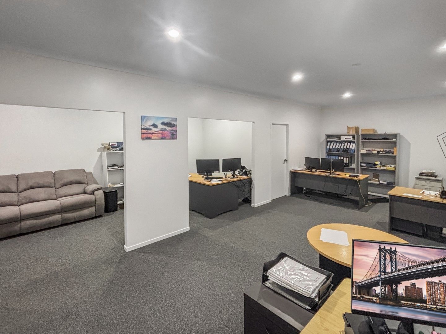 ~ Divided into 5 air-conditioned office spaces, 2 upstairs and 3 down stairs
