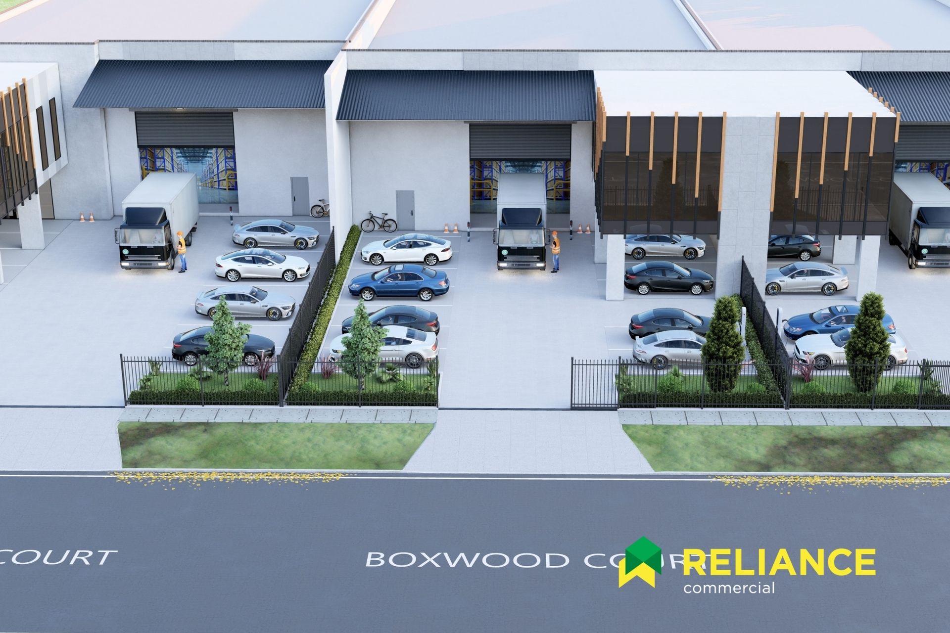 • High, versatile access: each warehouse with 5.0m-wide x 5.5m-high roller door(s) and covered loading canopies (up to ~83.5m²), ideal for trucks and last-mile.