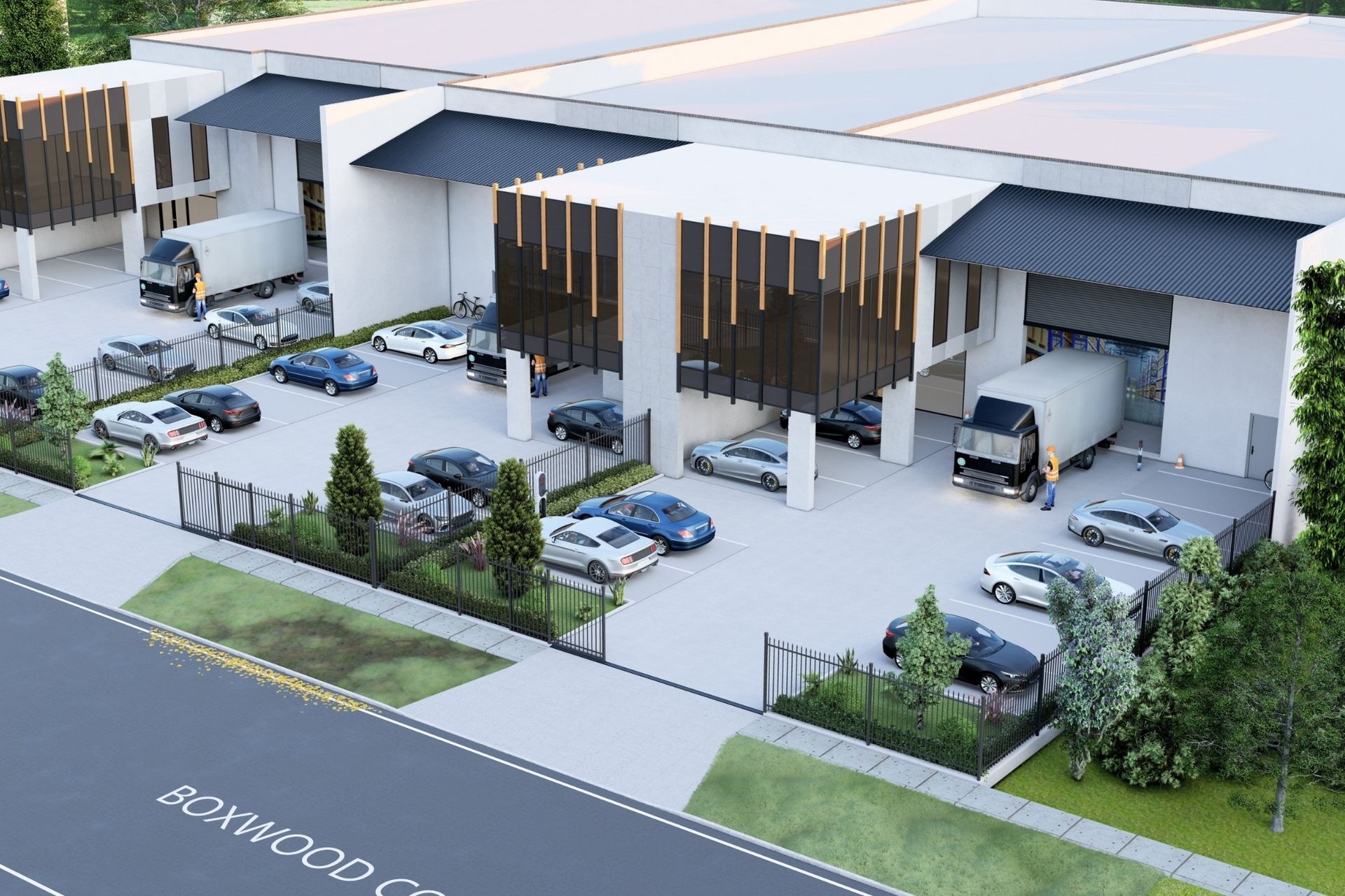 • Efficient layouts: clear-span warehouses with 3° Trimdek roof, generous internal height, smart services (roof access hatches, box gutters/sumps), and practical yard circulation.