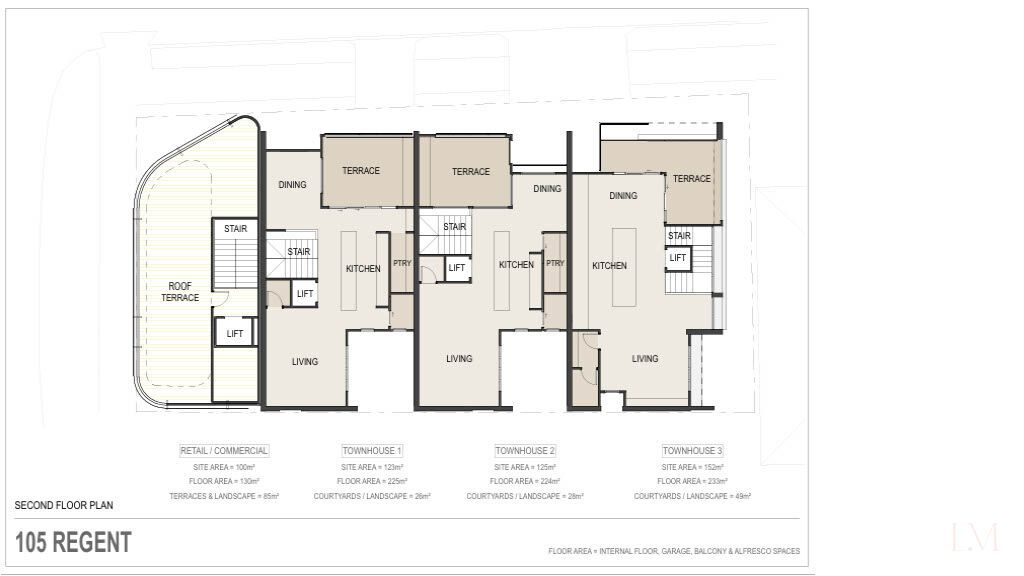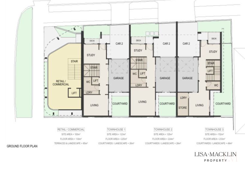 - DA Approved for three architect-designed townhouses and one sophisticated commercial space;