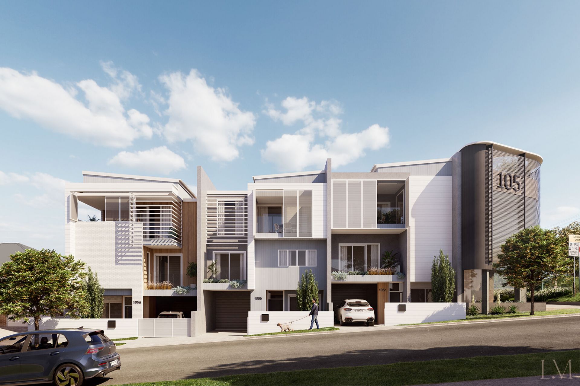 - Three-bedroom floorplans, including master suites with ensuites and walk-in robes;