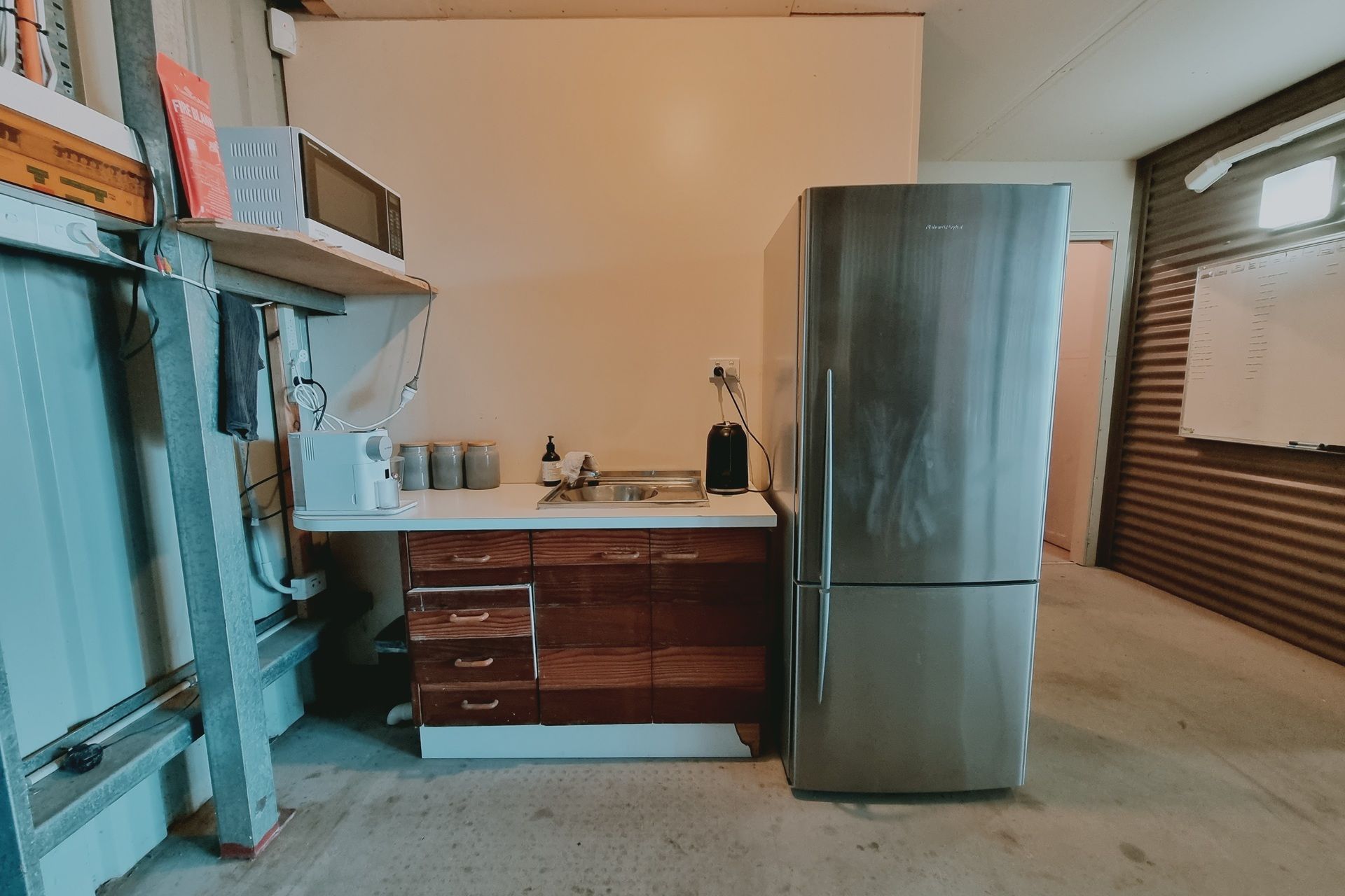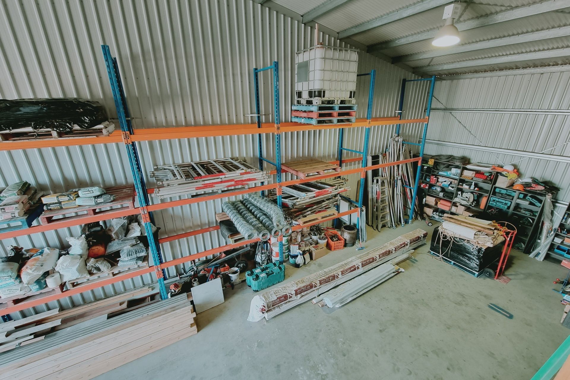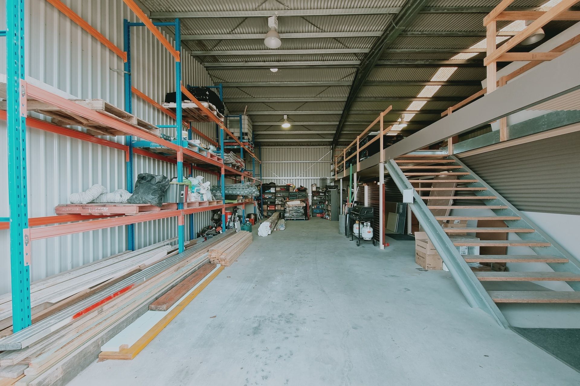 • High-clearance workshop with mezzanine storage