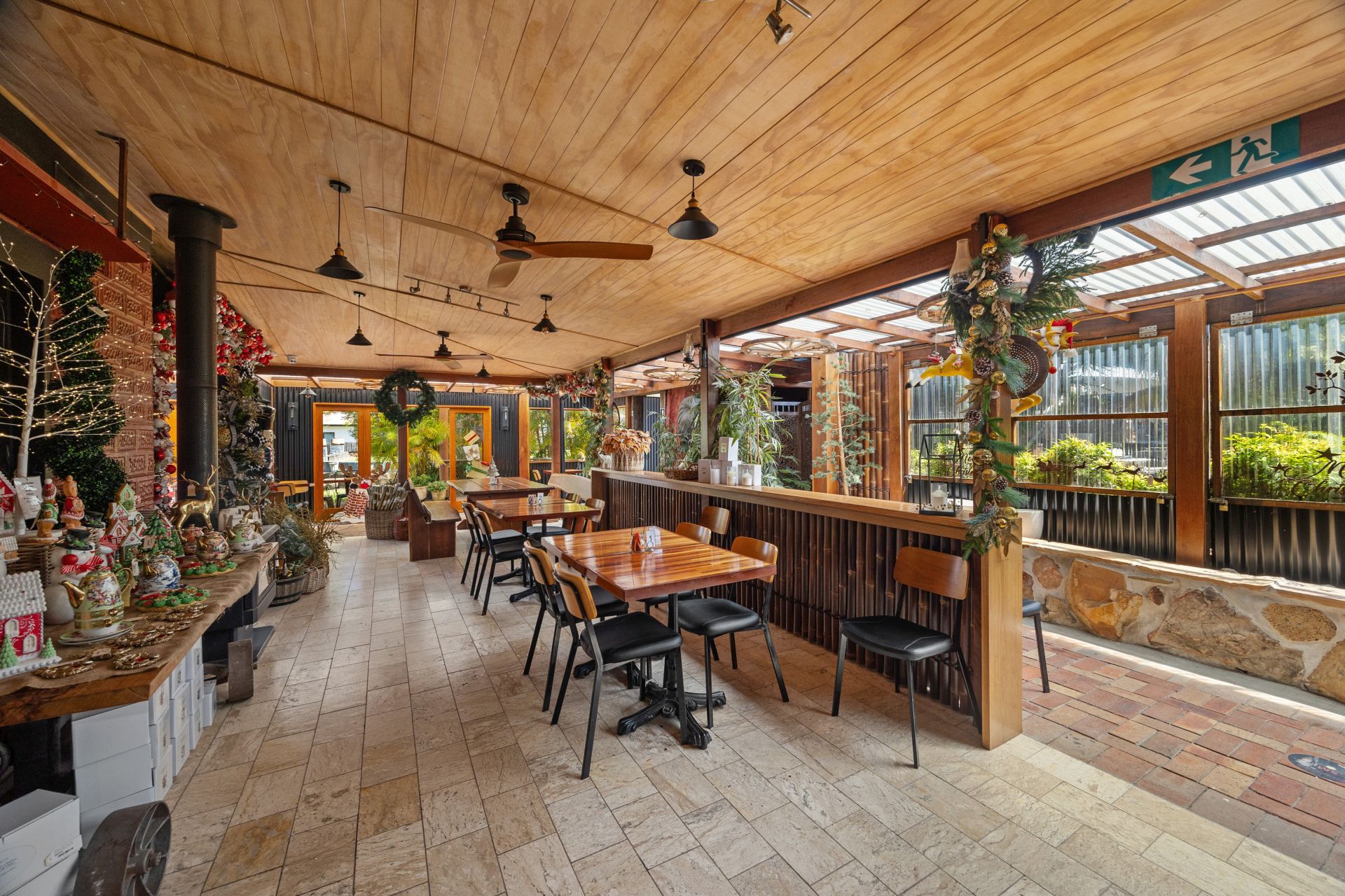 Currently operating as a successful Caf, year round Christmas Shop & homewares retailer, the site features multiple commercial spaces, a substantial modern warehouse, extensive parking and beautifully maintained gardens with outdoor dining zones.