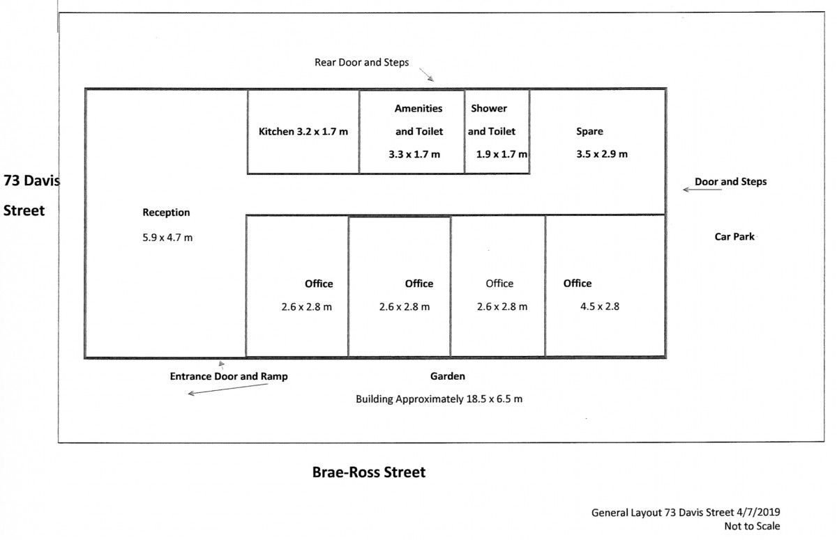 Solid Brick Building (Approx 125m2) consisting of a Reception, 4 Consulting Rooms, Bathroom, Kitchen, 2 Toilets and set on a corner block with ample on and off street parking.