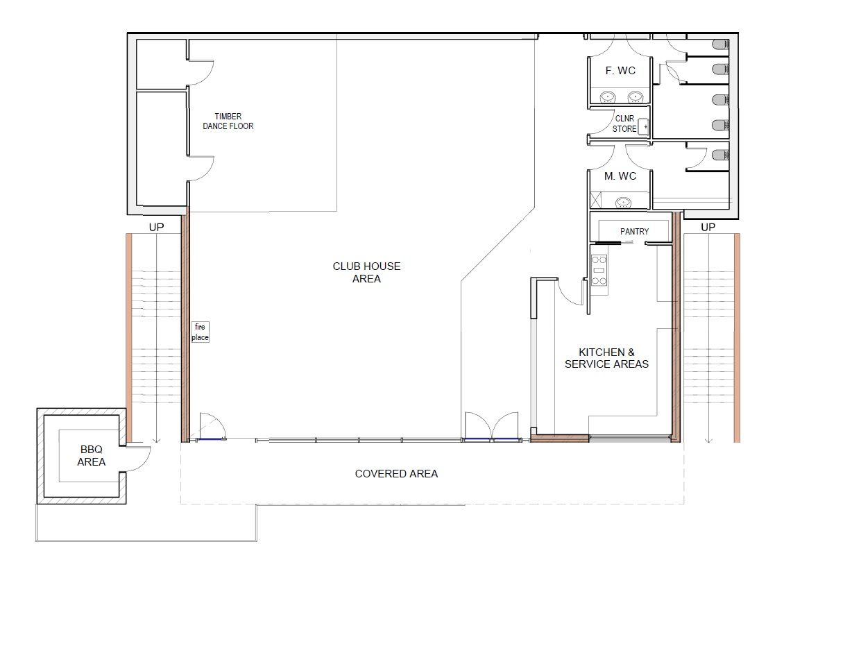 - Large kitchen / service area