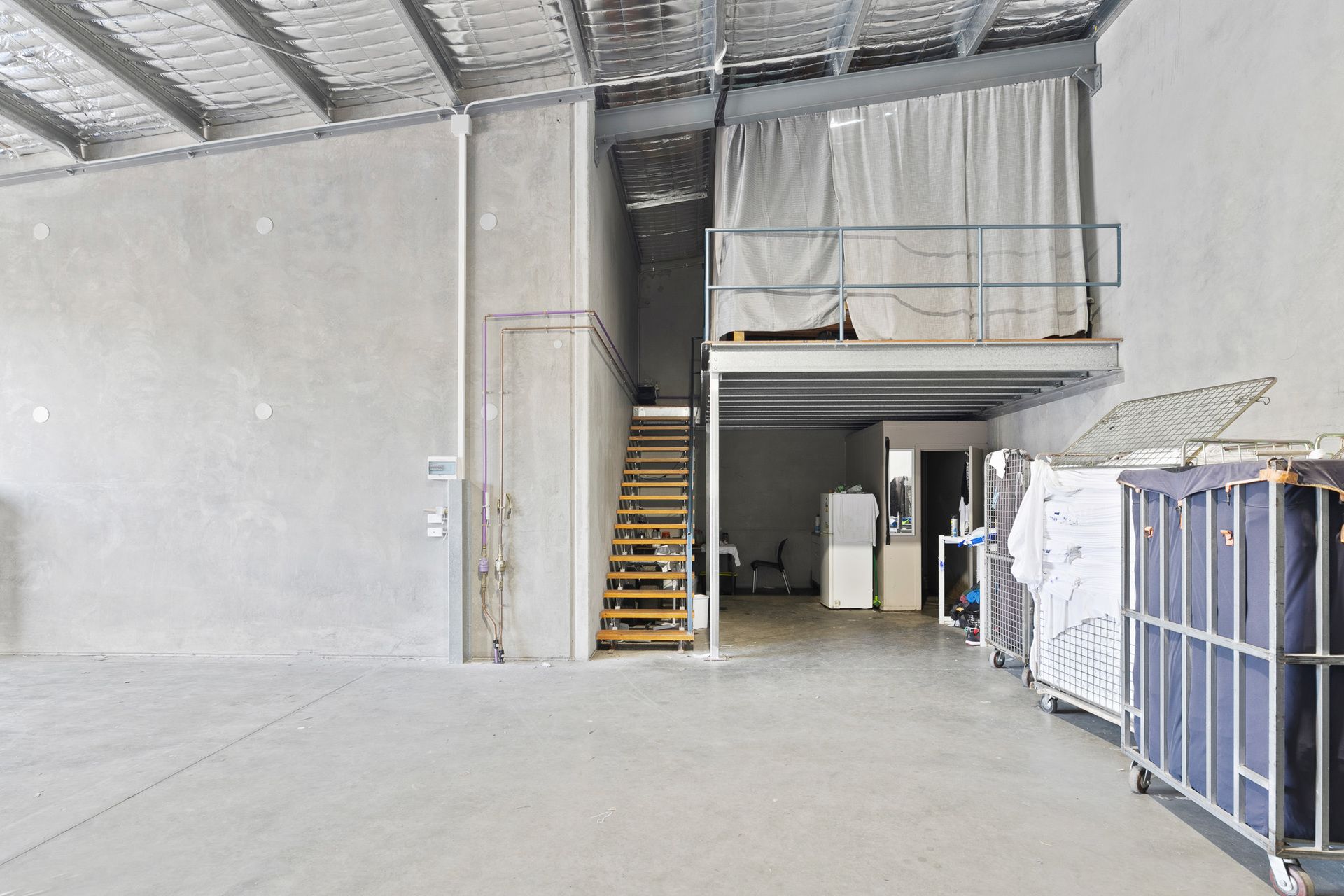 There is 115 square meters on title plus the addition of a mezzanine of 25m2, kitchen area and internal toilet. Built in 2016, the modern concrete tilt slab construction ensures extra height for storage and high roller door access is ideal for loading/logistics. There is also a glass sliding door as alternate access to a potential office space.