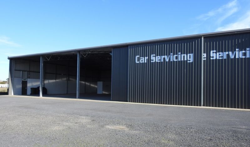 EAST FACING ARE 3 LARGE SLIDING DOORS TO 3 LARGE BAYS WITH CLEARANCE OF 5.3 METRES