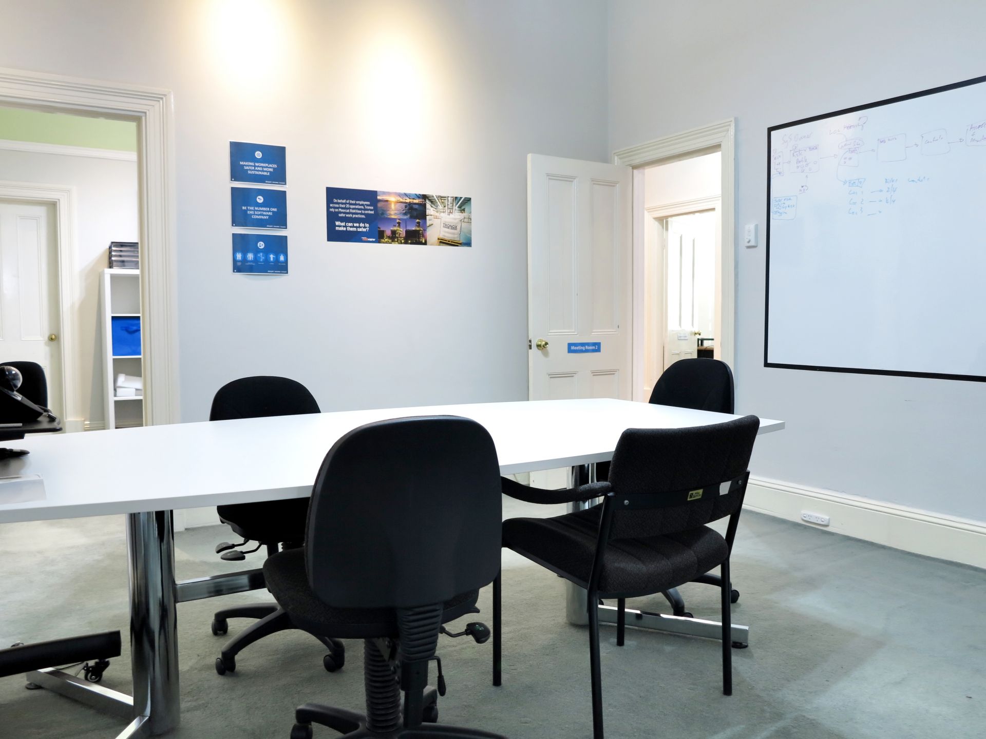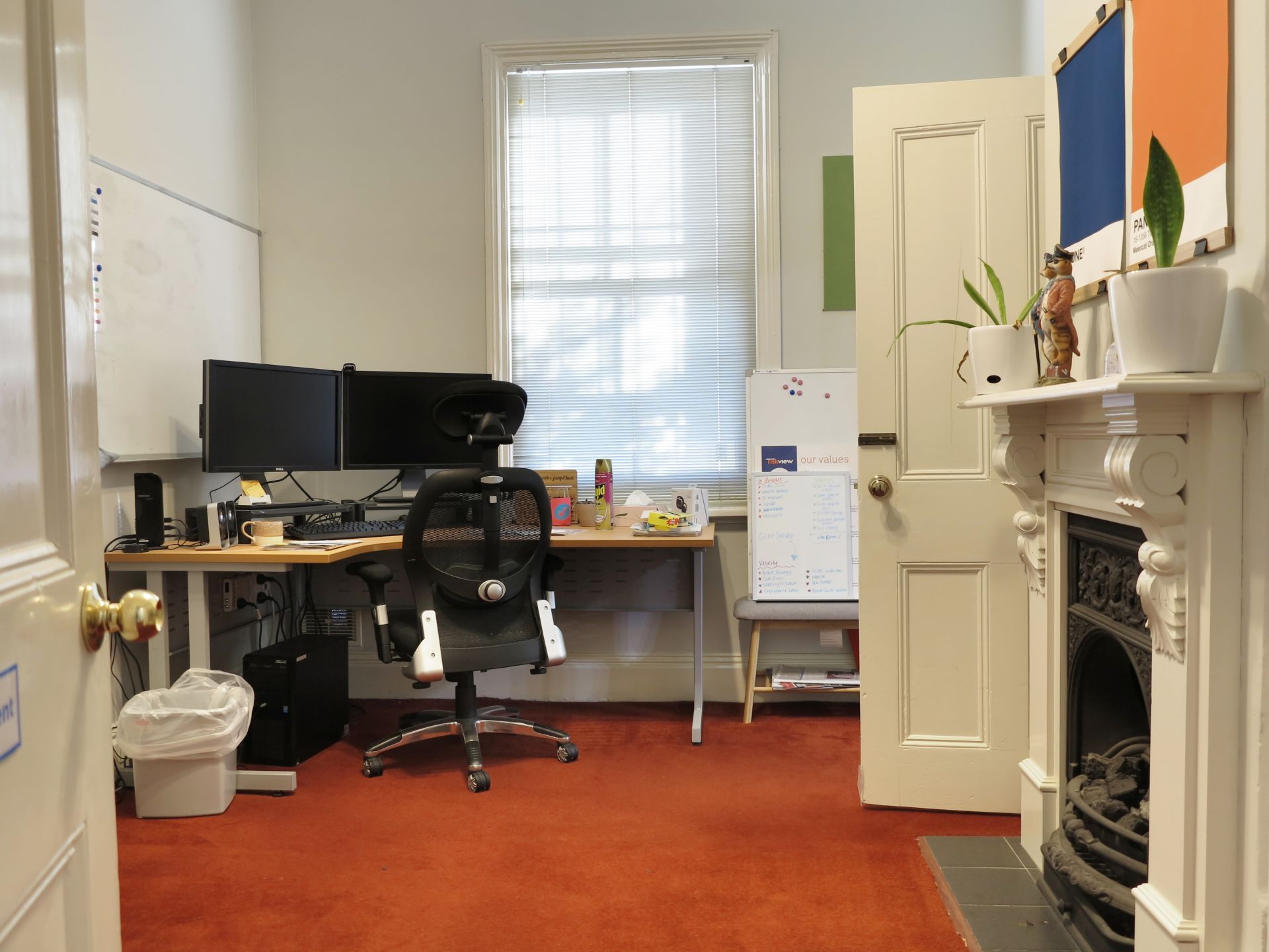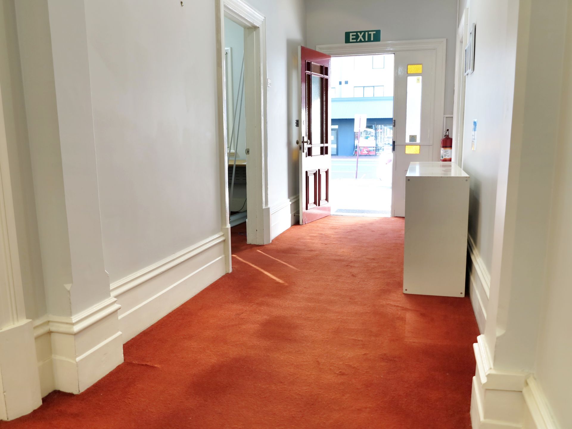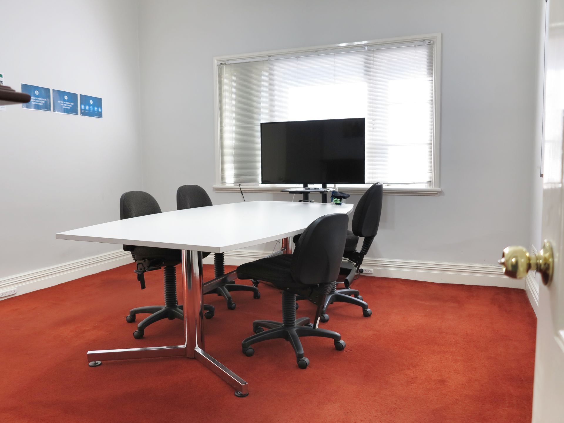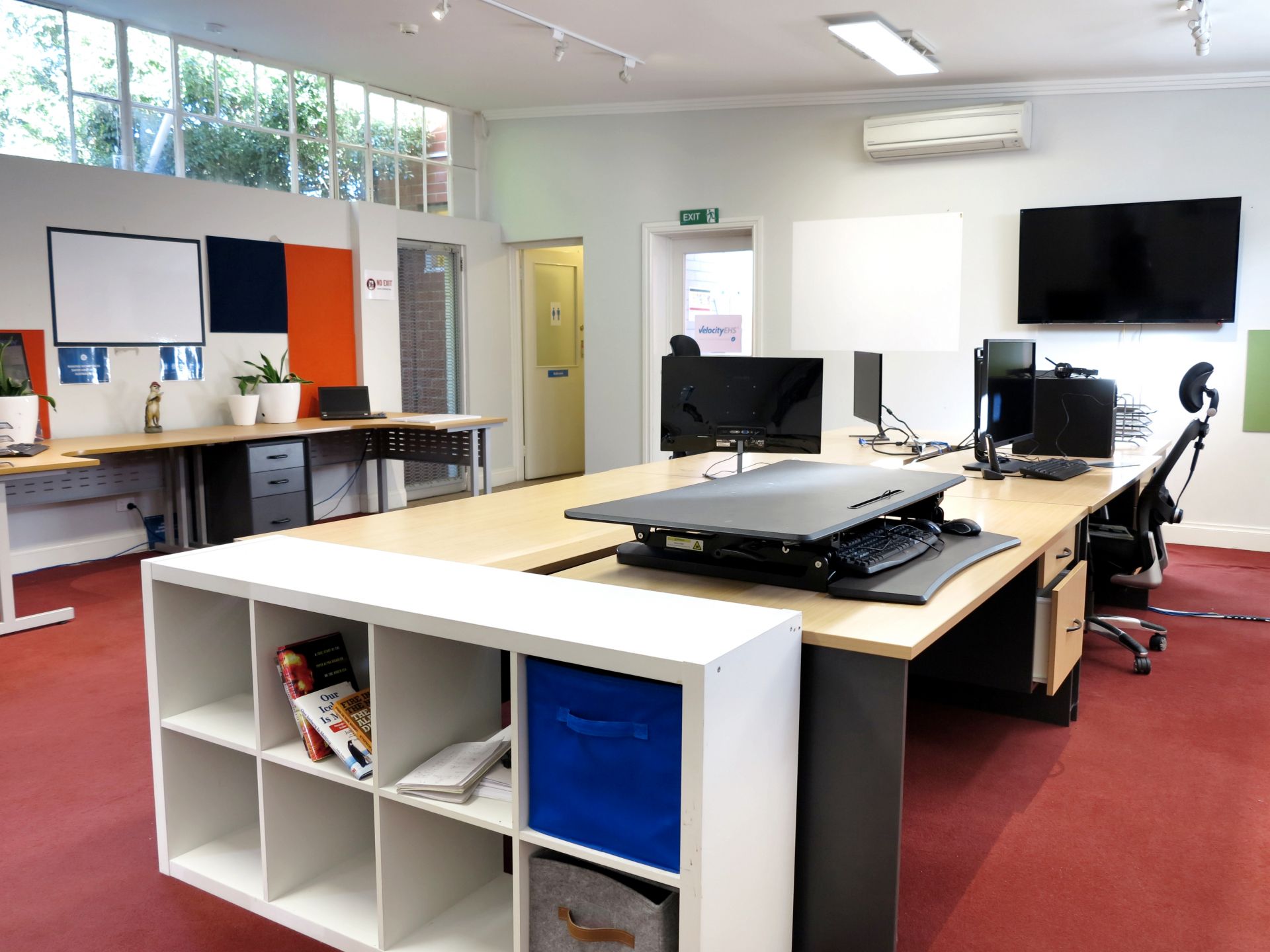 - The office features high ceilings and generous room sizes with a combination of open plan and private rooms.
