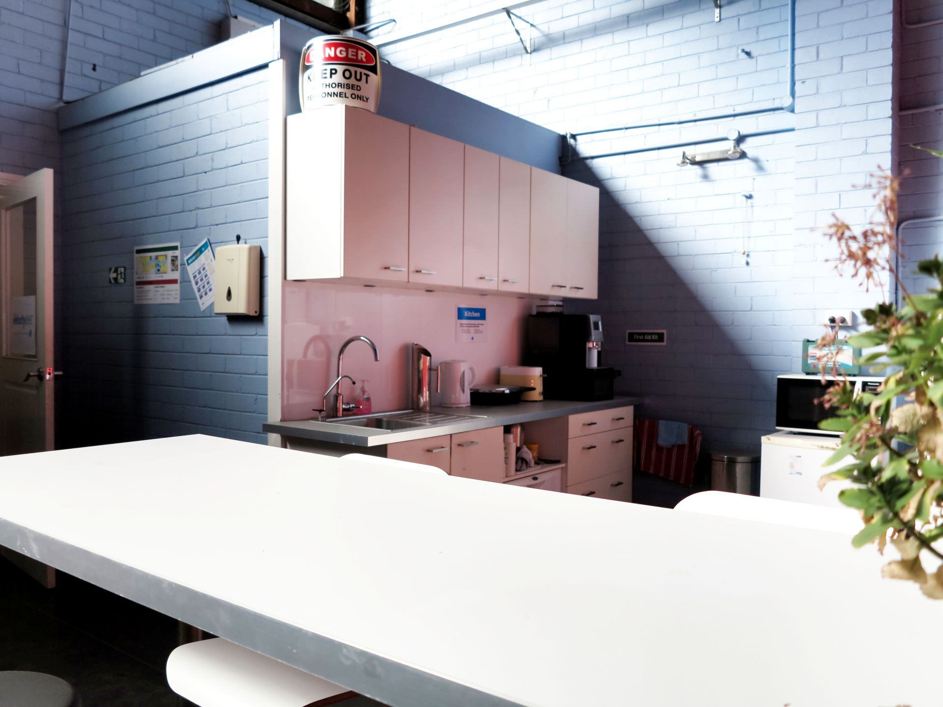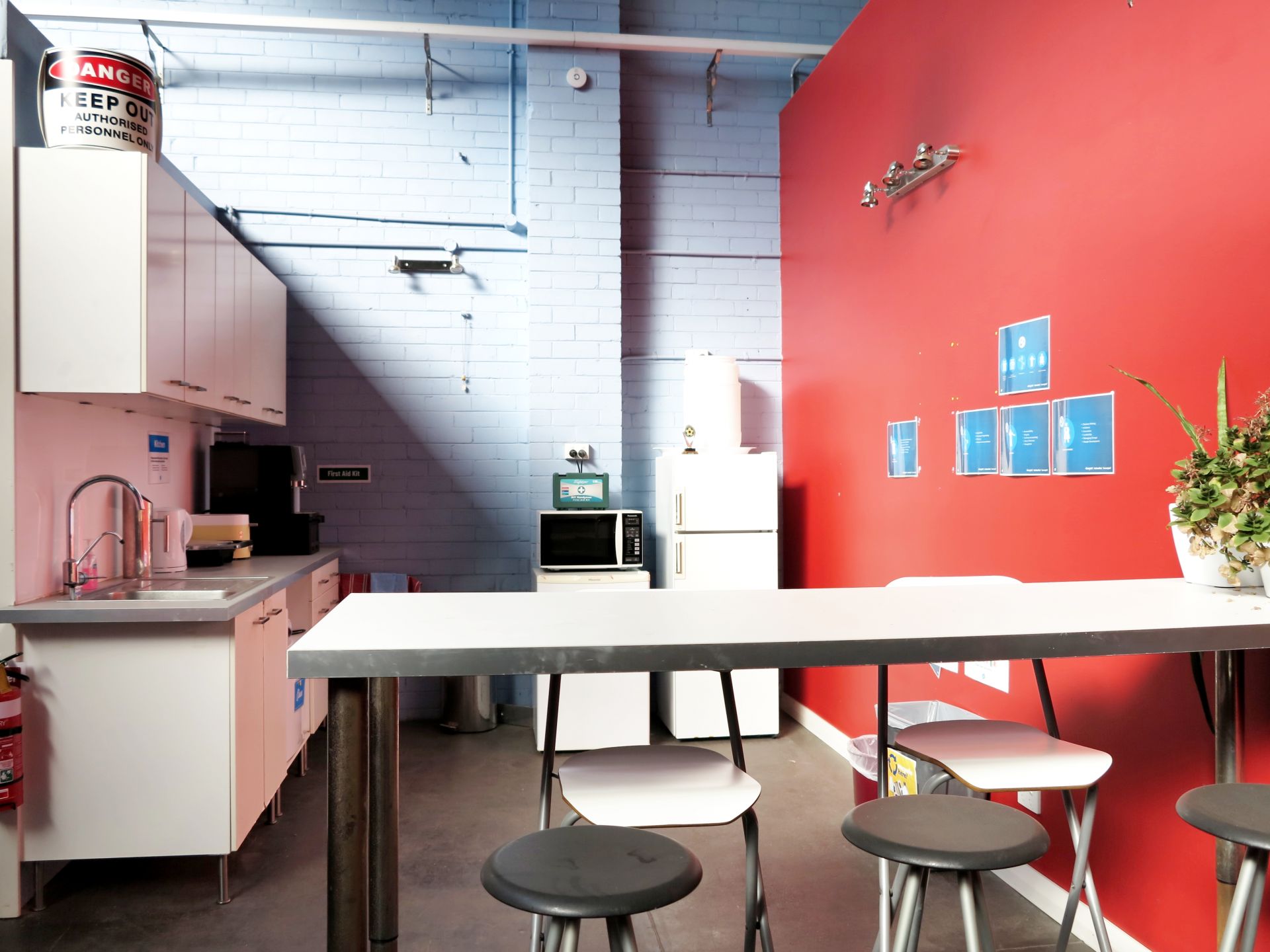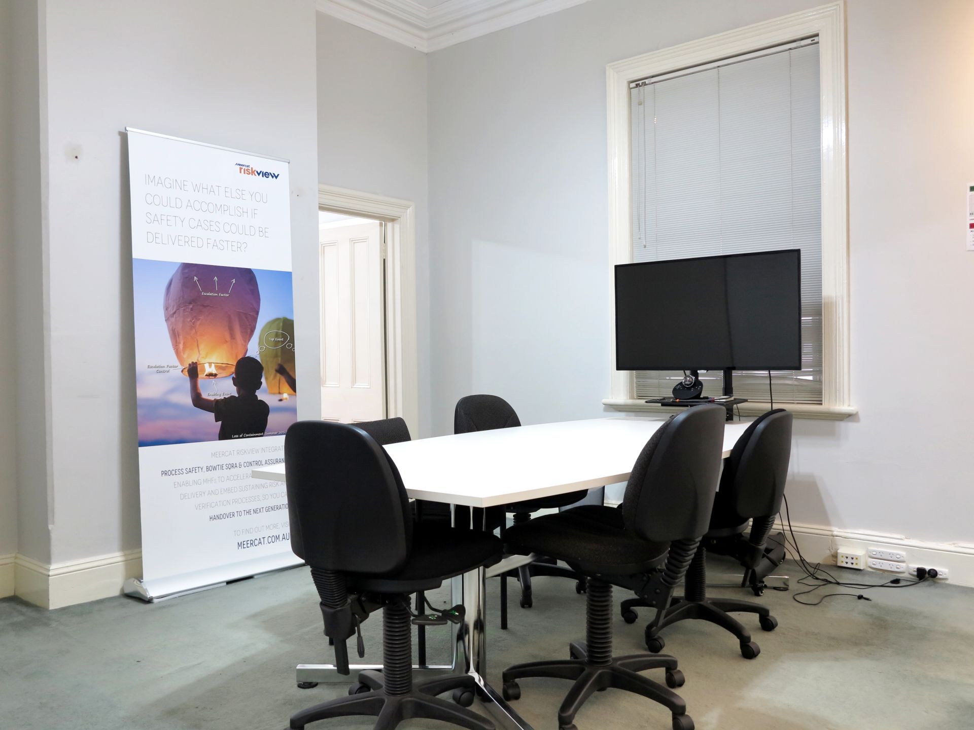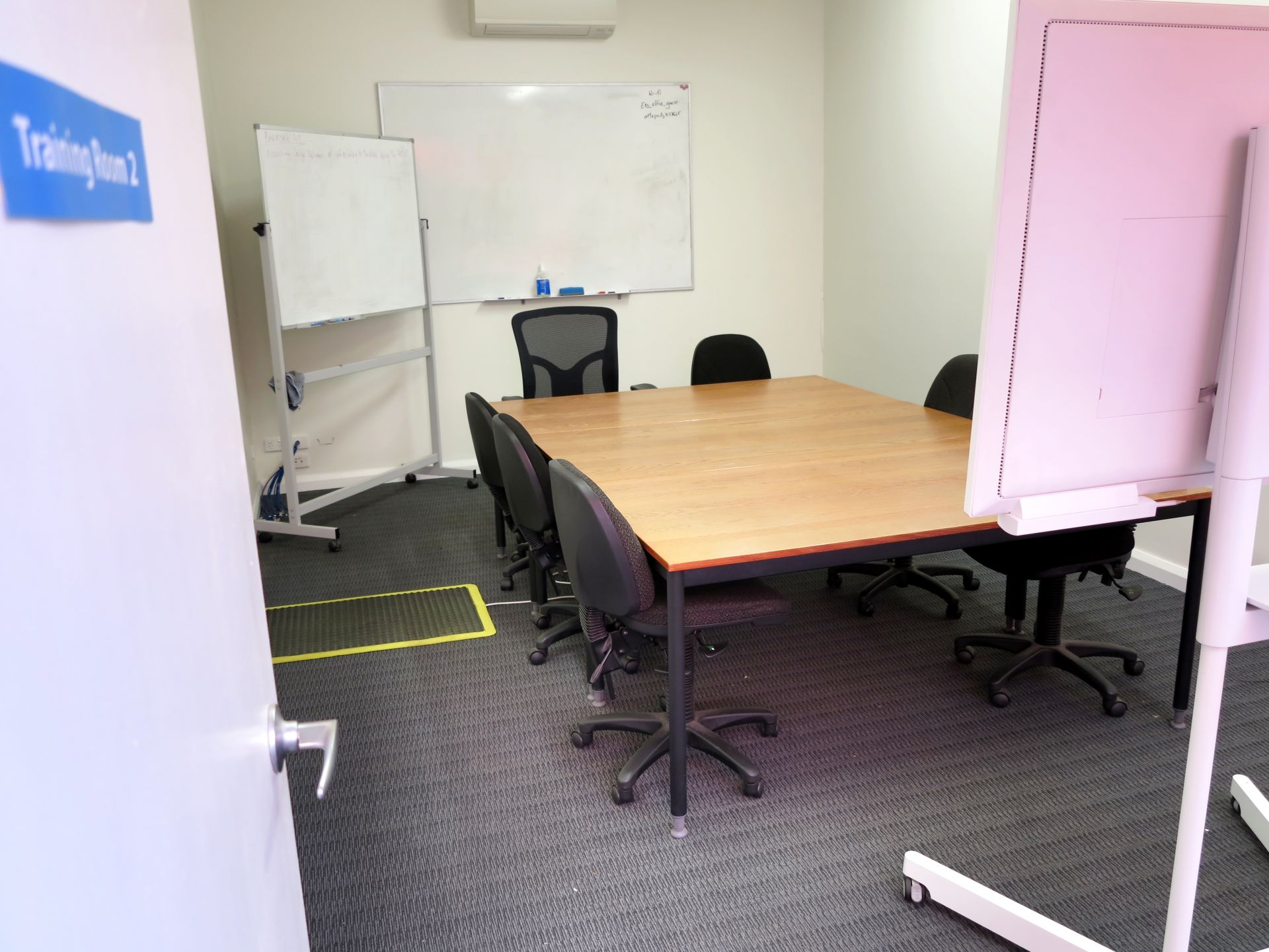 - The office features high ceilings and generous room sizes with a combination of open plan and private rooms.