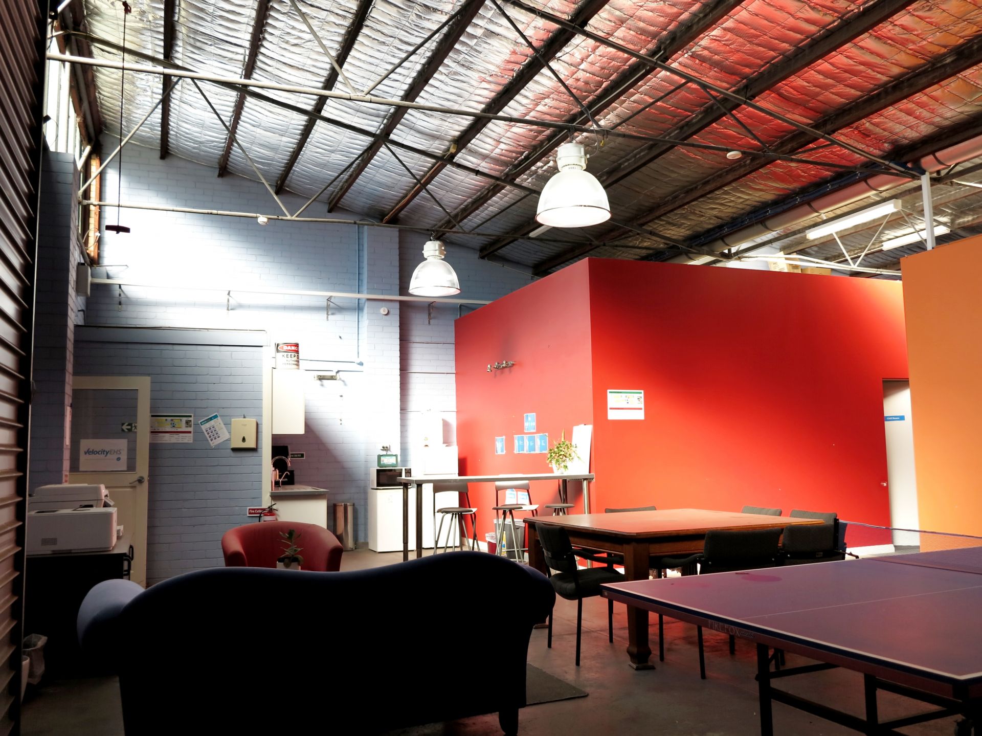 - Spacious warehouse benefitting from great natural light from scissor roof design.