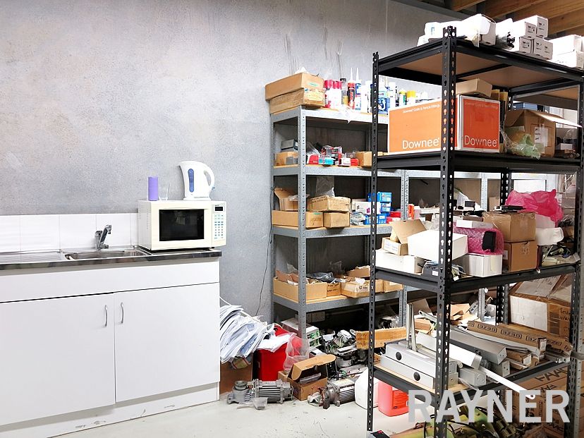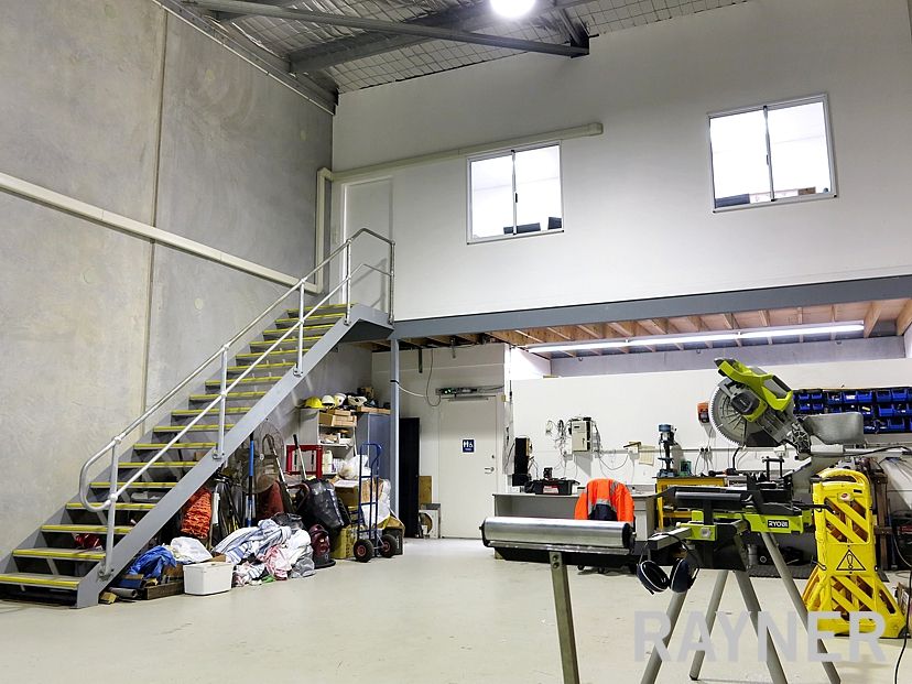 - Professionally built mezzanine office above kitchenette and bathroom.