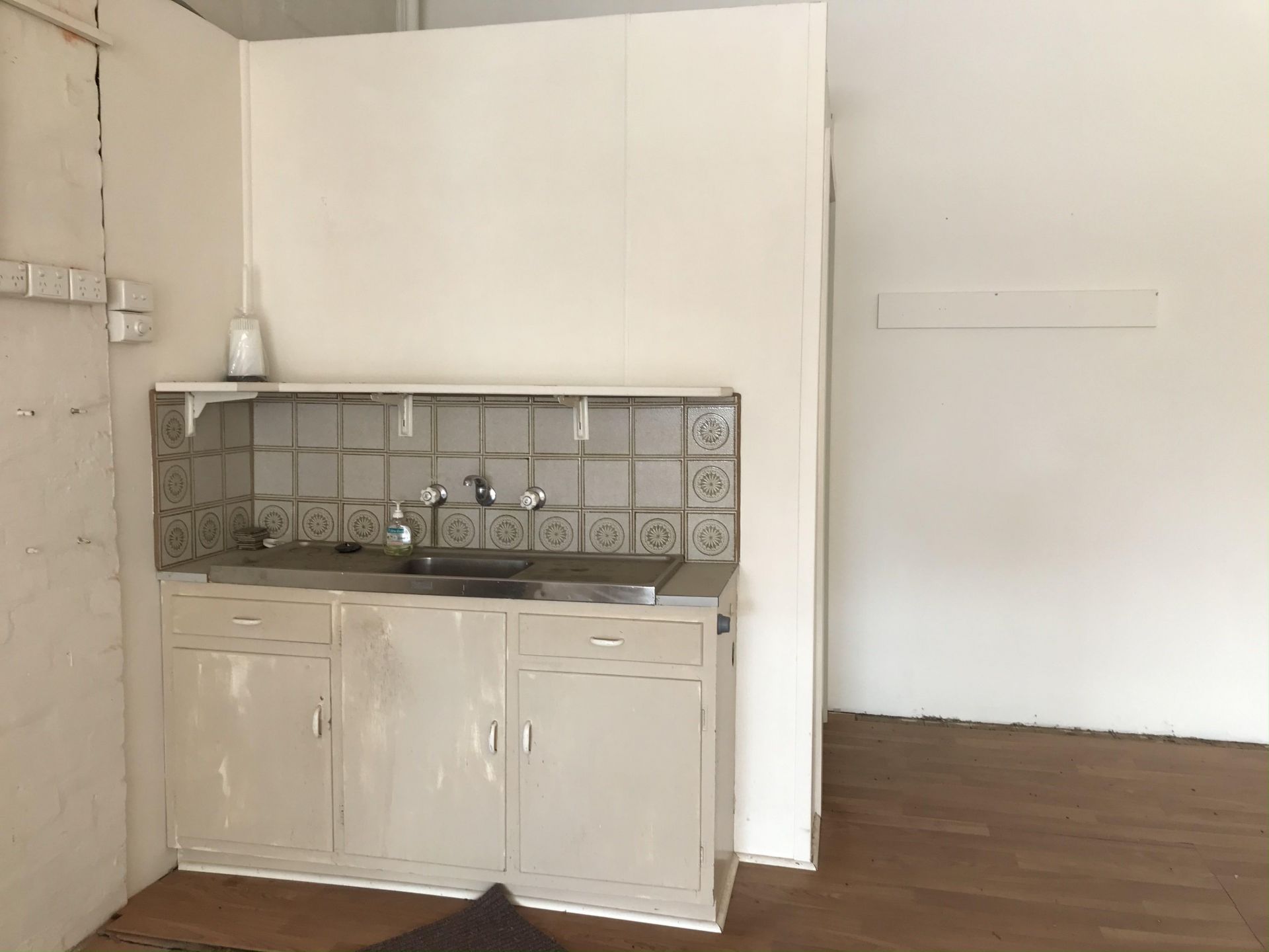 A small kitchenette and separate toilet