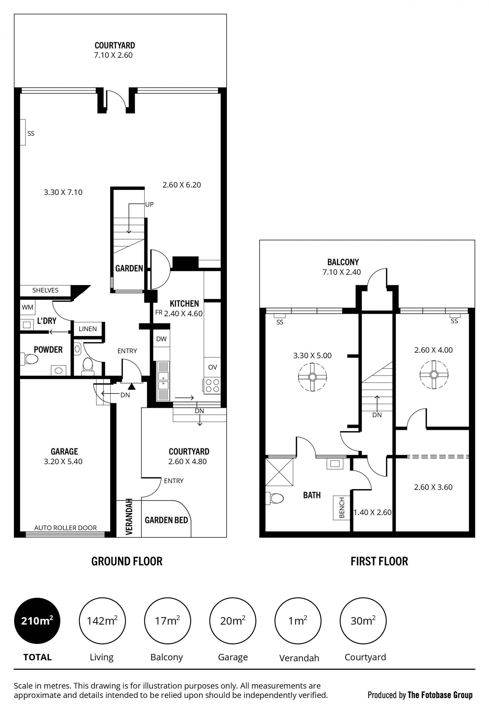 Large upstairs balcony 7.0m x 2.67m and private rear courtyard 7.0m x 2.13m.