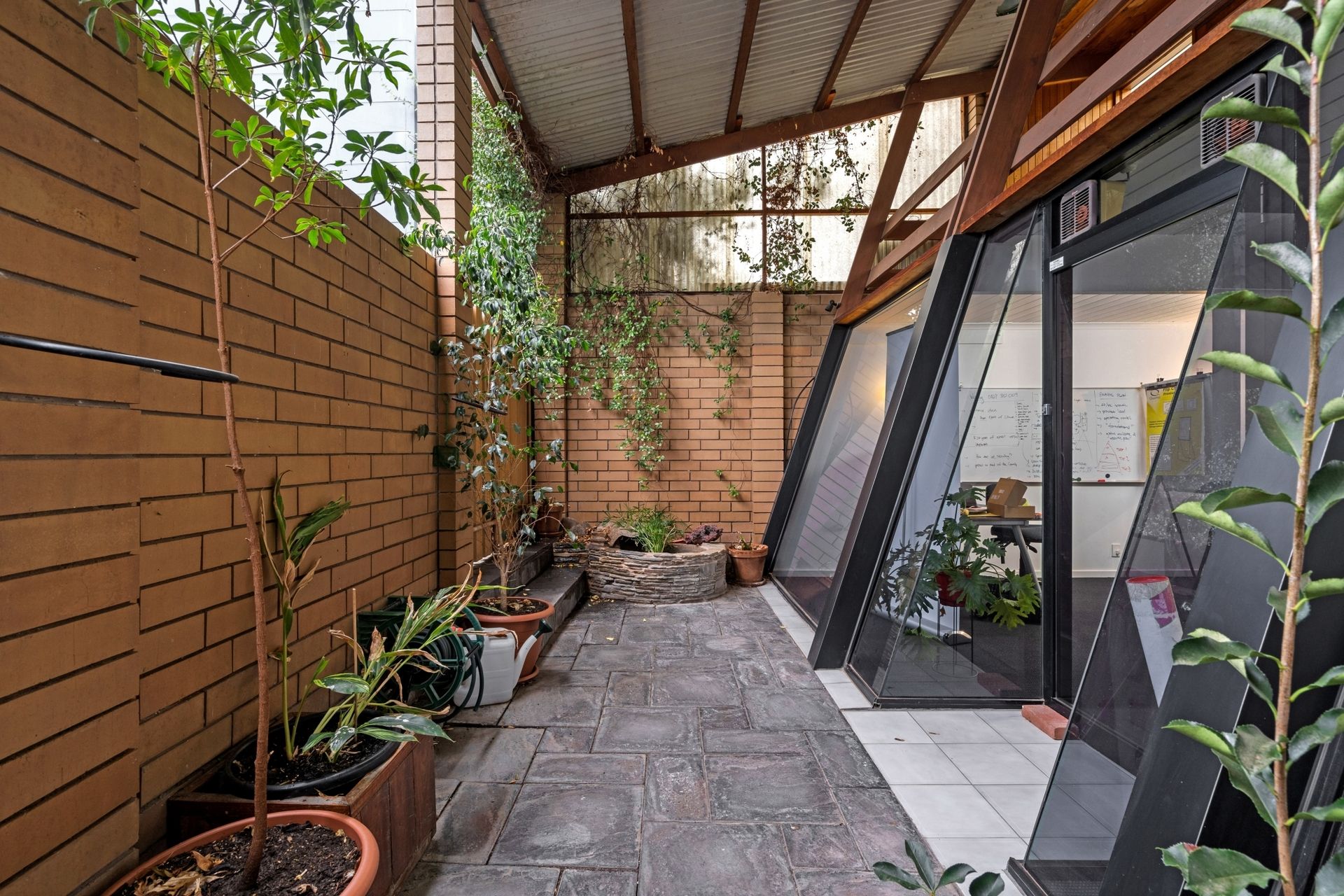 Recently used as 6 office spaces for a sustainability advisory company with equal to 6 main rooms full kitchen with small courtyard, 3 toilets/Male & Female separate, one full bathroom and separate laundry, downstairs floor to ceiling glass windows (Northern Aspect) overlooking courtyard garden with gate access to rear lane.