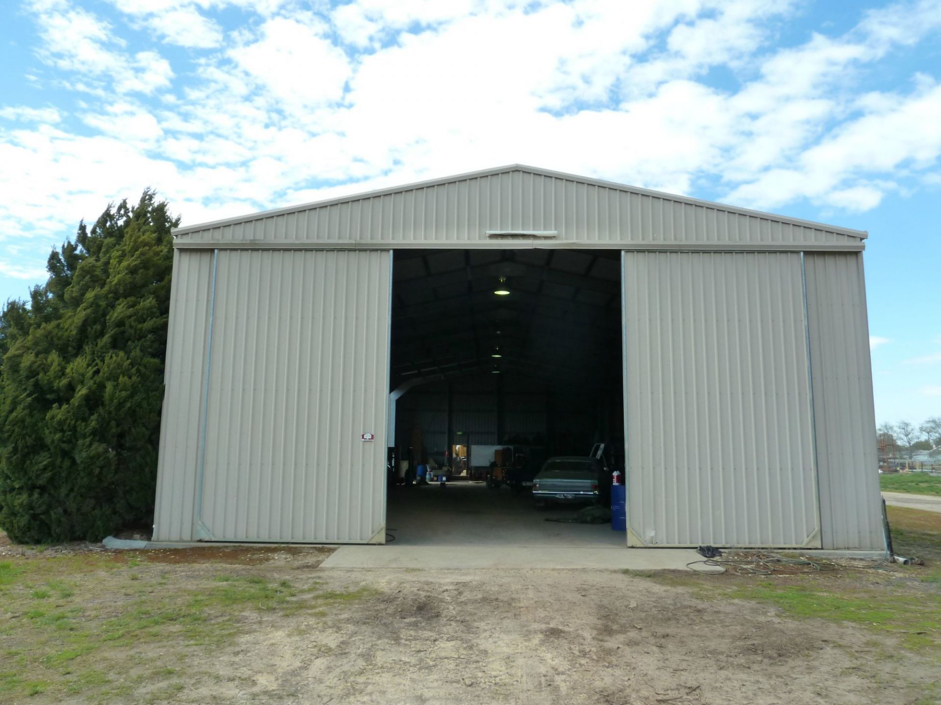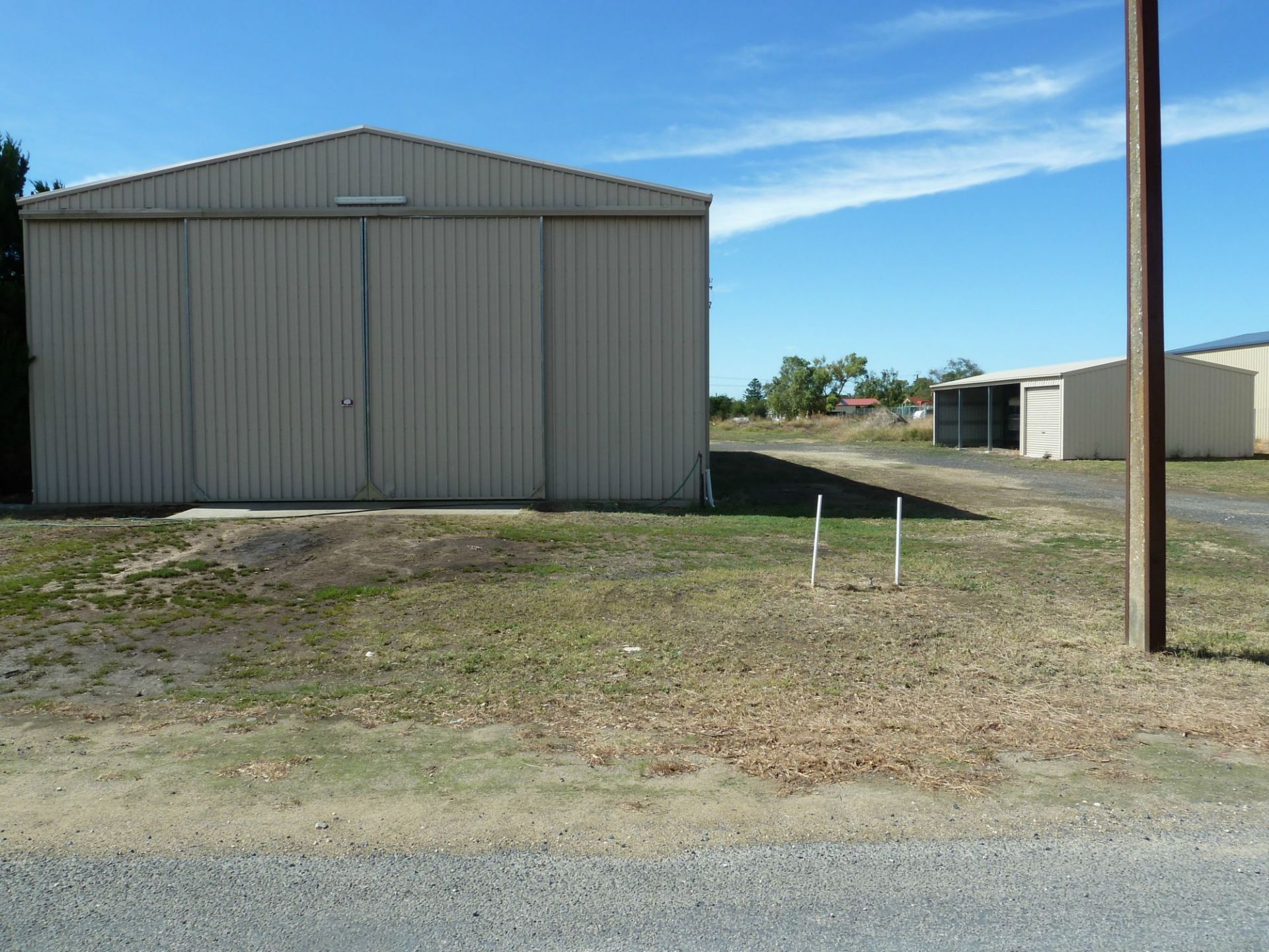 - 14m x 7m shed with 1 bay enclosed with a rollar door, 3 bays open with gravel.