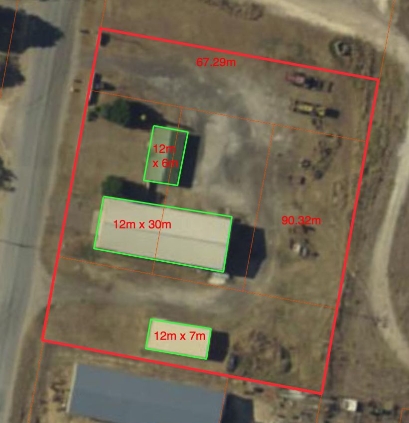 - 30m x 12m Truck Workshop which includes, double sliding door at the front with 5m clearence, single roller door with 5m clearence to the north and personal access door at the rear.