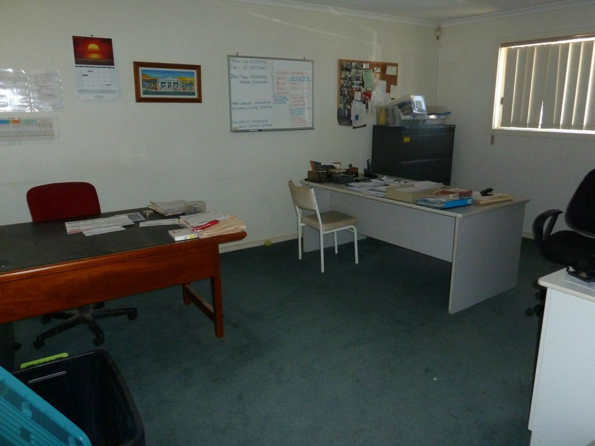 - 12m x 6m office building which includes office spaces, front reception, kitchen area and separate bathroom including shower.