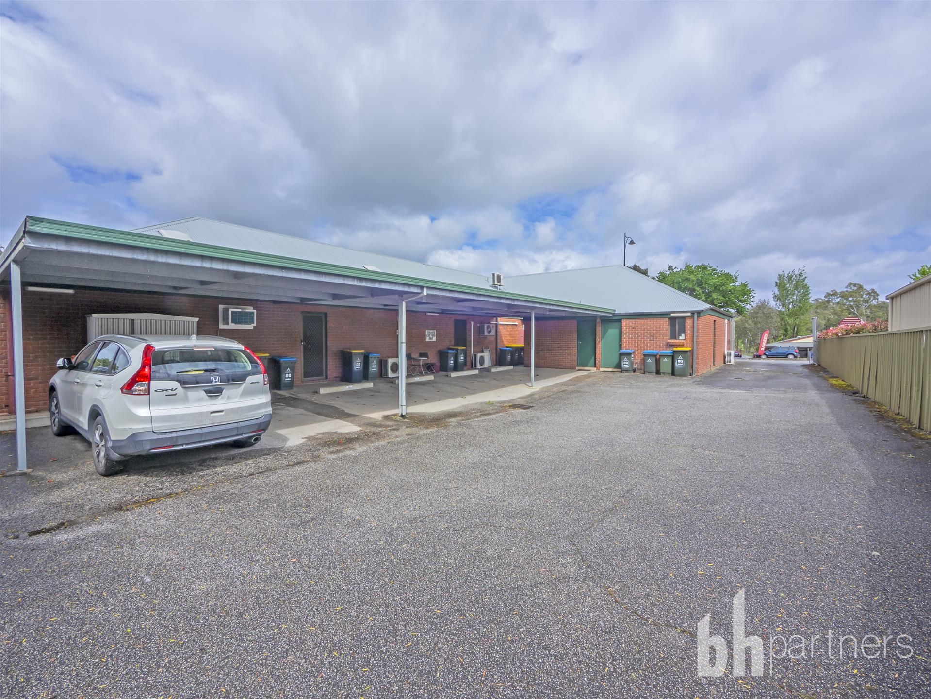 12 car spaces, 6 under cover parks for tenants and 6 for customers.