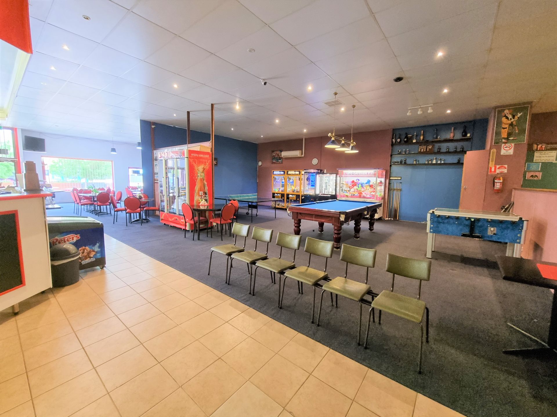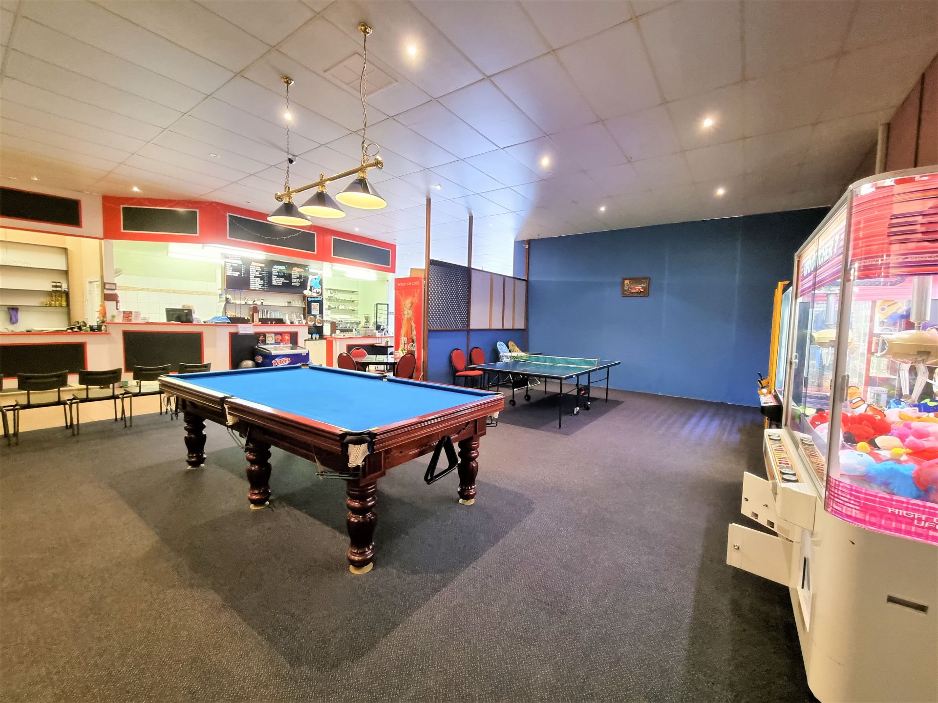 The games room is another attraction and a cash flow arm of the business complimented by the sit down café with meals and beverages plus take away food.