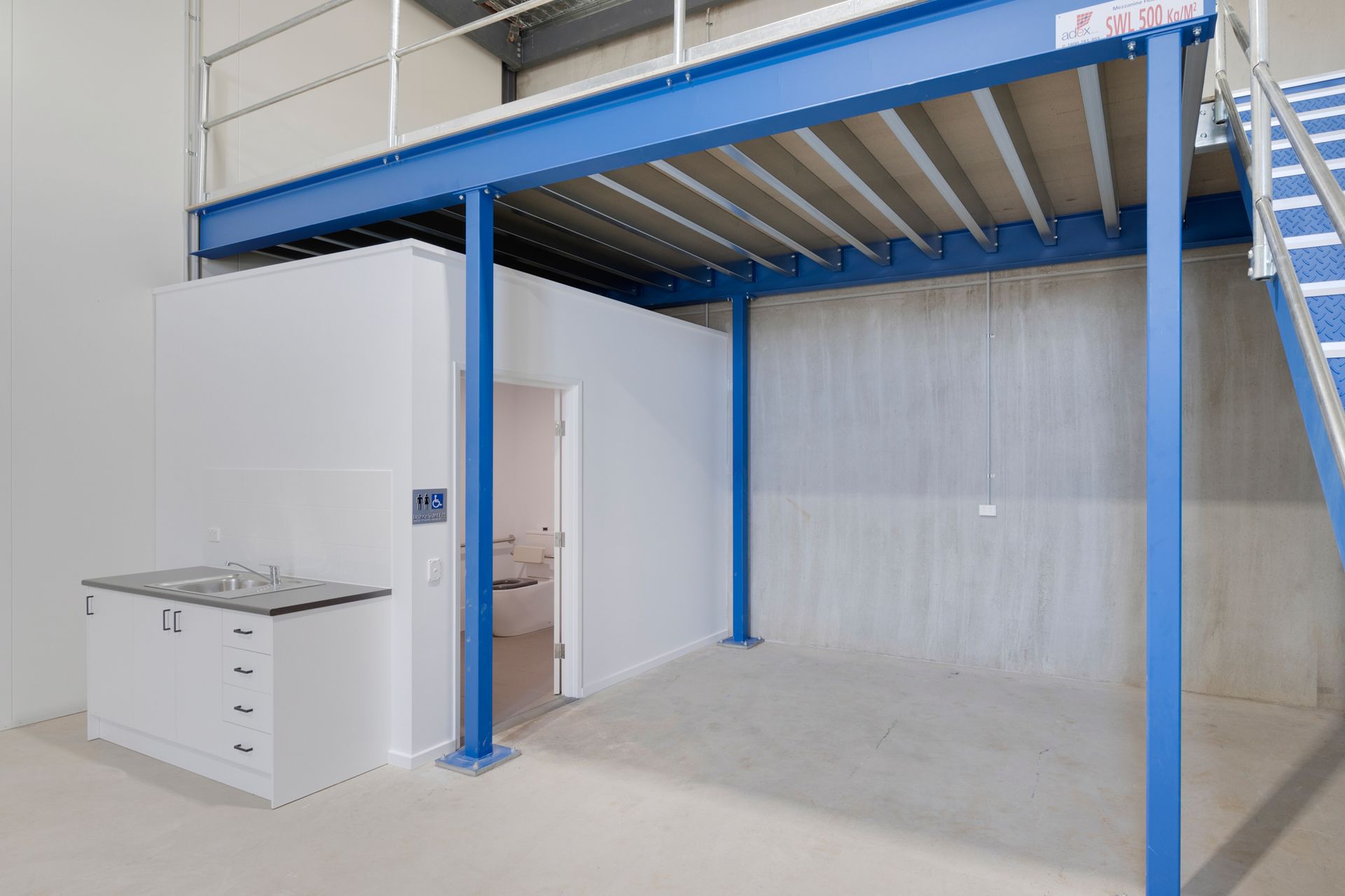 - Mezzanine area can be used as storage or office area.