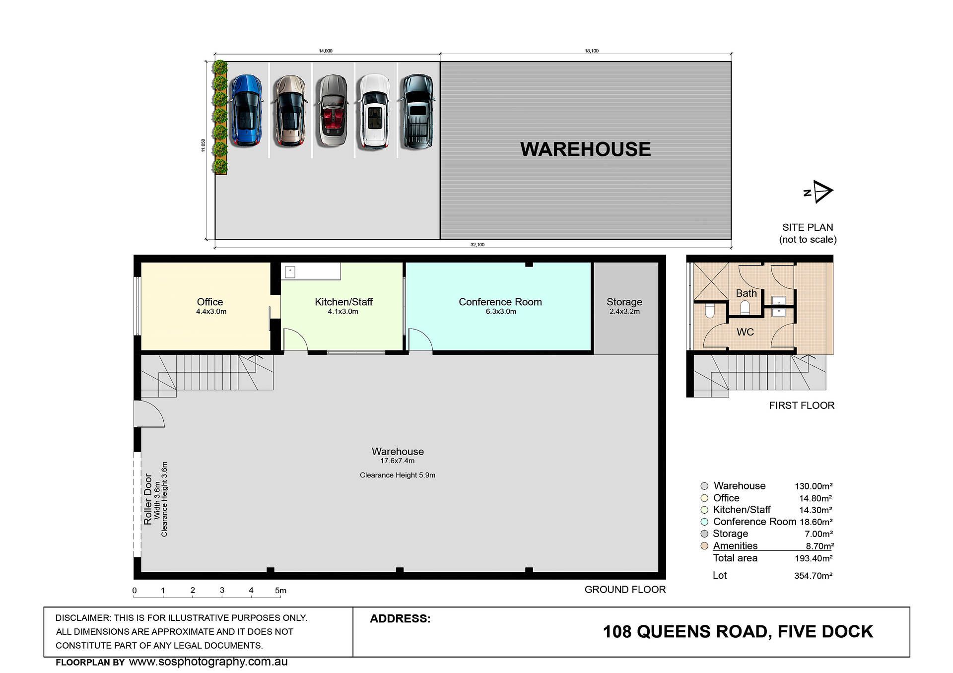 Land area 353sqms, floor area 405sqm approximately (including car spaces)