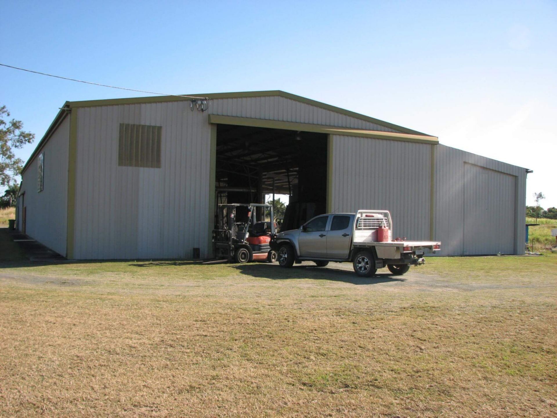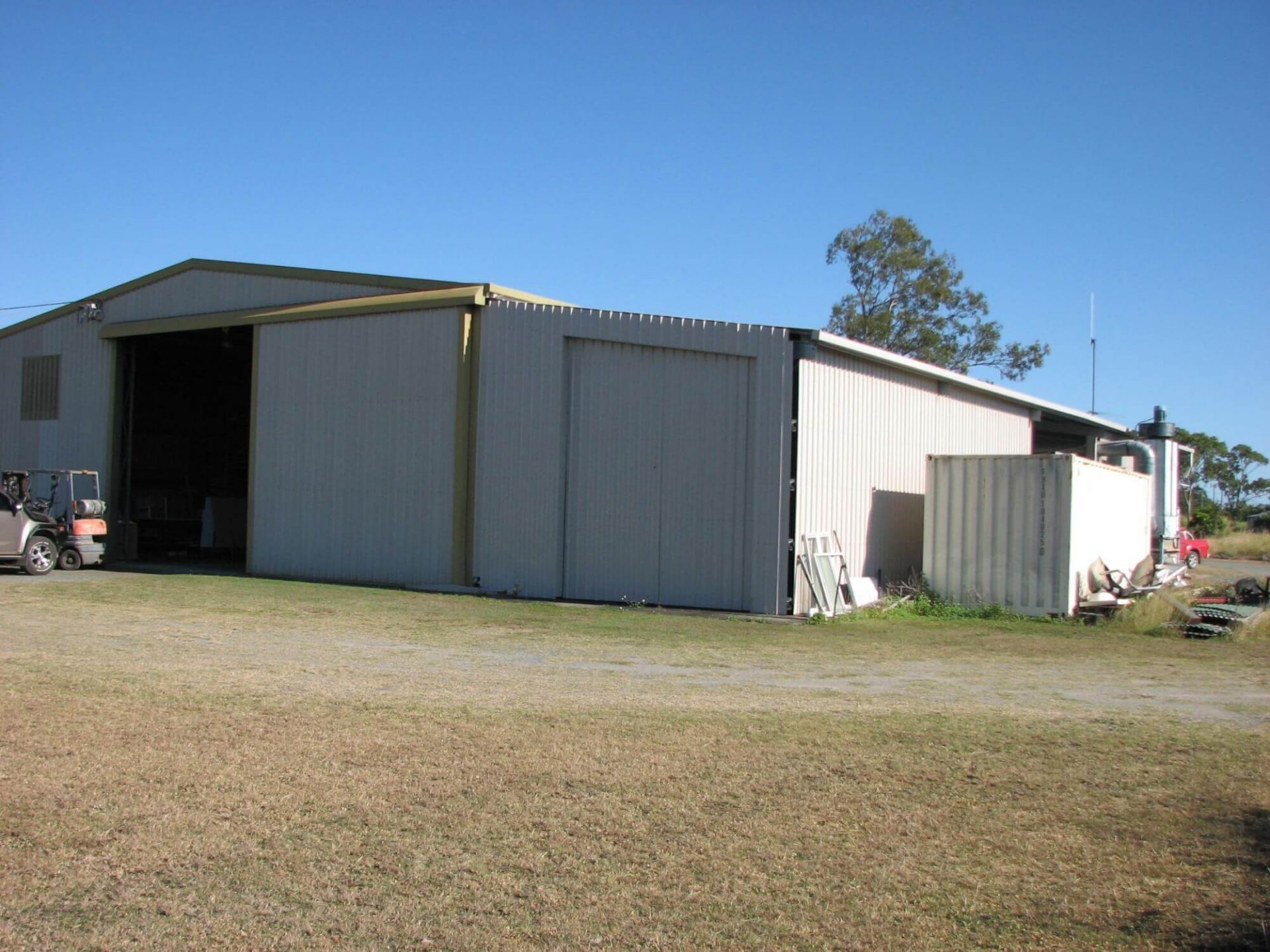 Own personal advertising sign in front yard, 3 Sliding Doors with Access Ranging from 5-6metres in width and 5.2mtrs Height with re-inforced footings and slab. Was origninally a heavy machinery workshop, Skillion 120m to south/east side, AC Office (approx 93sq metres with own toilet and shower), Single Warehouse toilet as well.