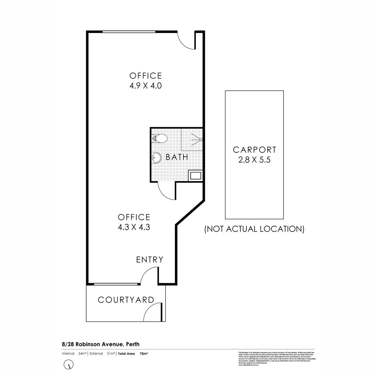 Floor Area 54 sqm; Strata Area 75 sqm