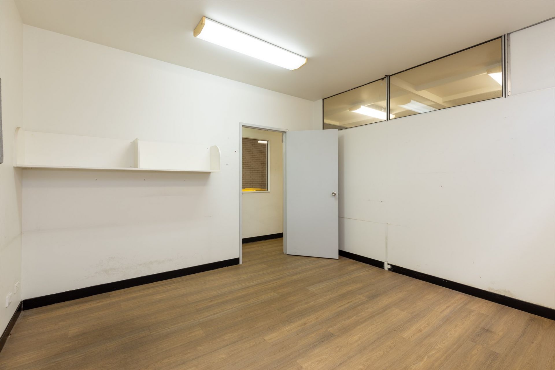 The office space, complete with beautiful wood flooring, exudes a professional atmosphere, making it an ideal setting for administrative tasks, meetings, or creative endeavors. In contrast, the concrete flooring in the warehouse ensures durability and can accommodate various industrial activities.