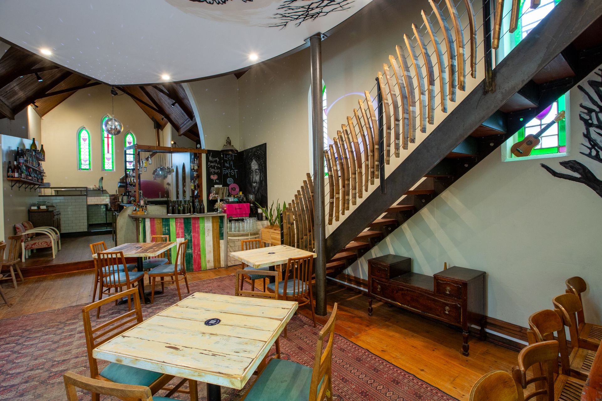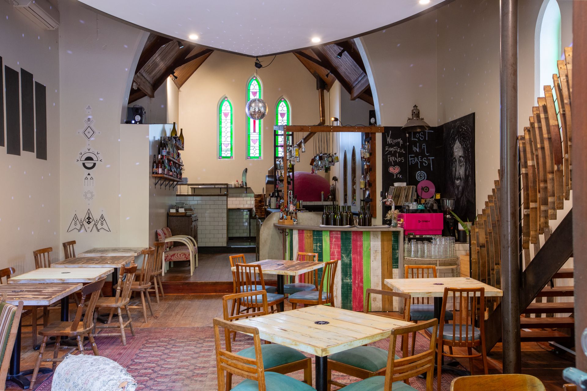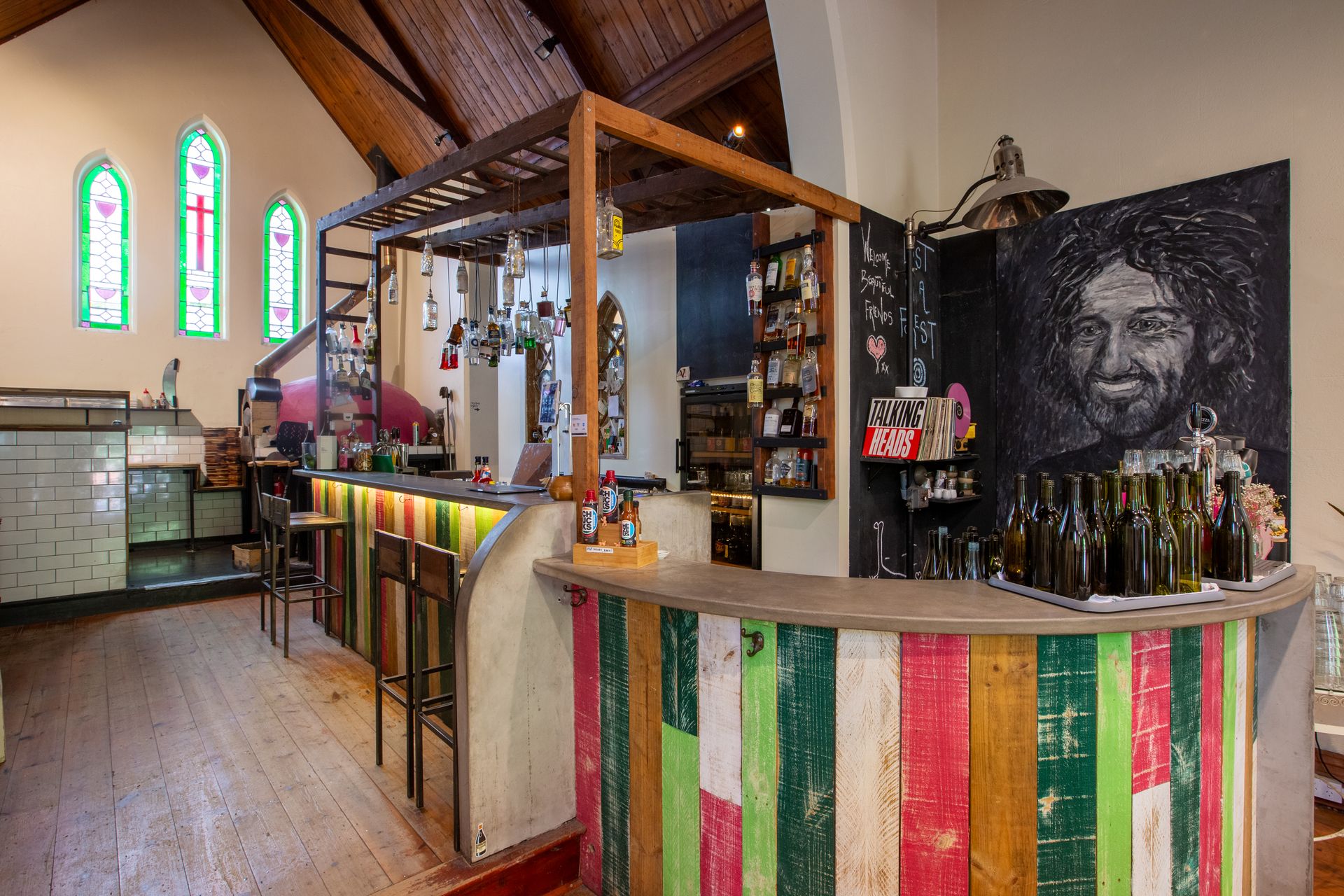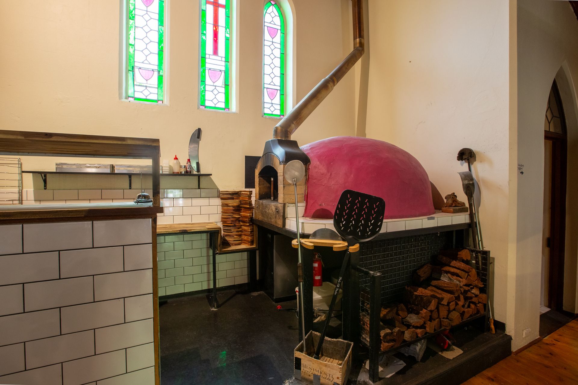 Church title includes 3 main dining areas, sensational wood fired pizza oven, semi commercial kitchen, gorgeous wine bar facilities, disabled parking and toilet amenities.