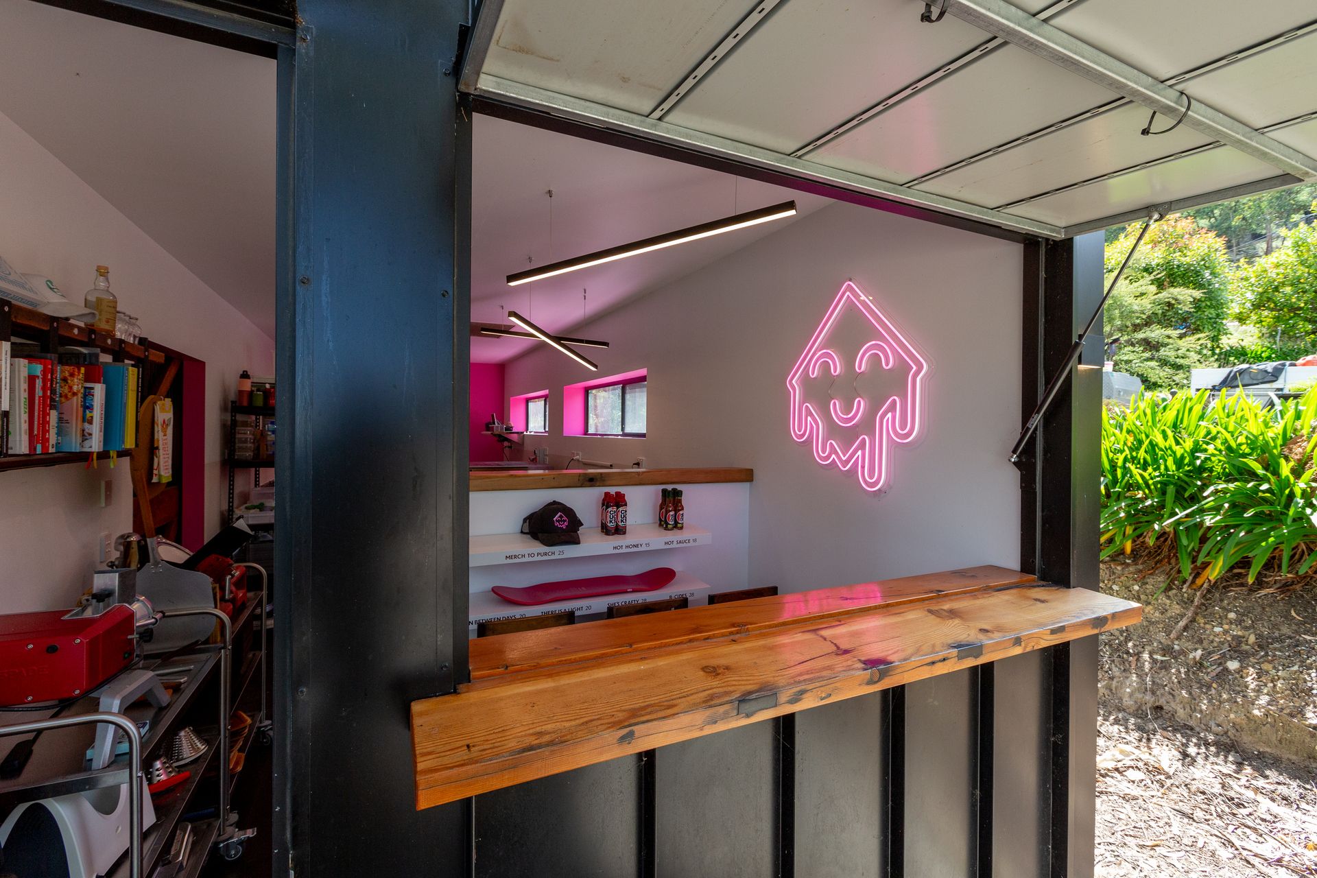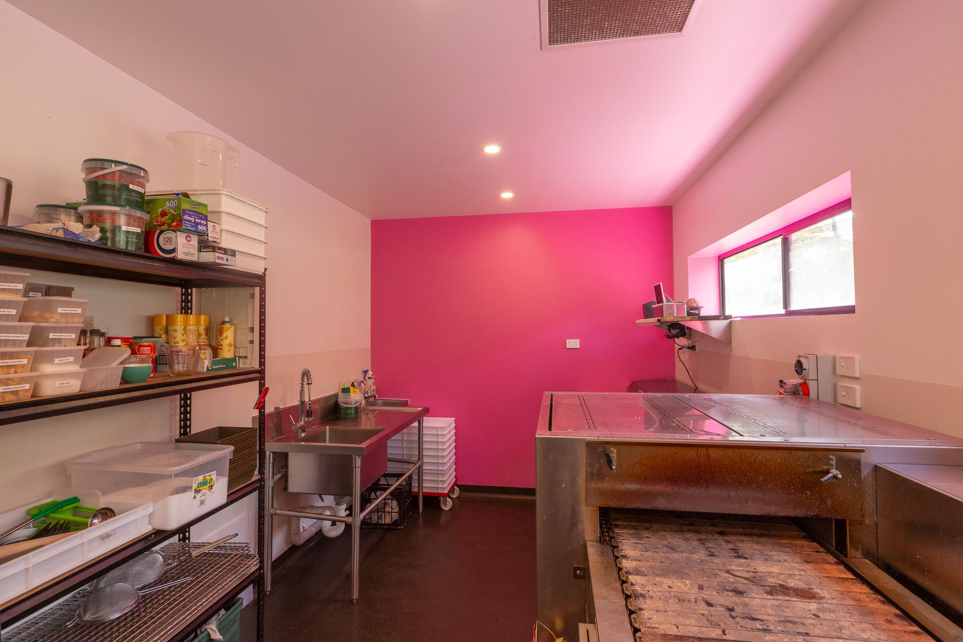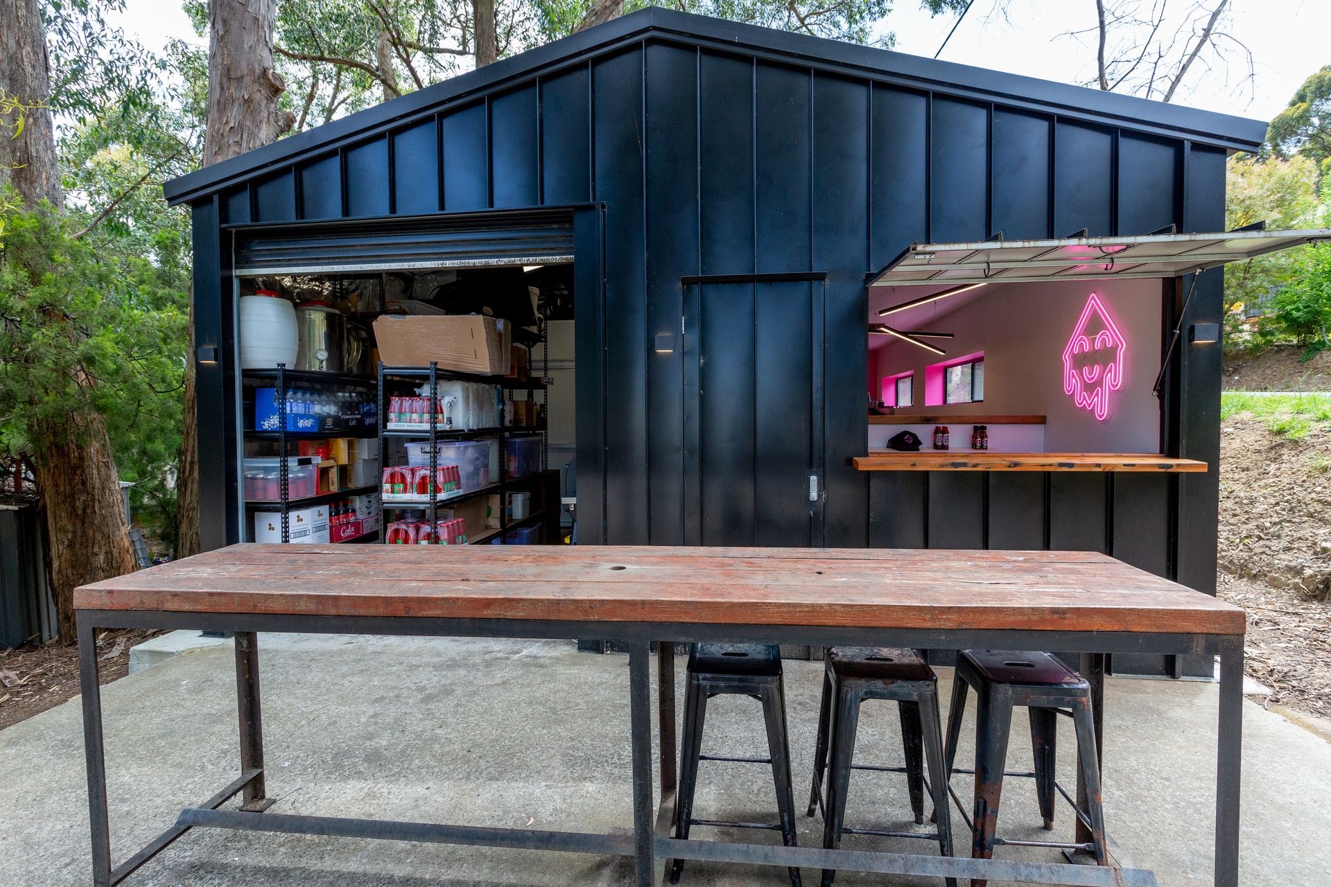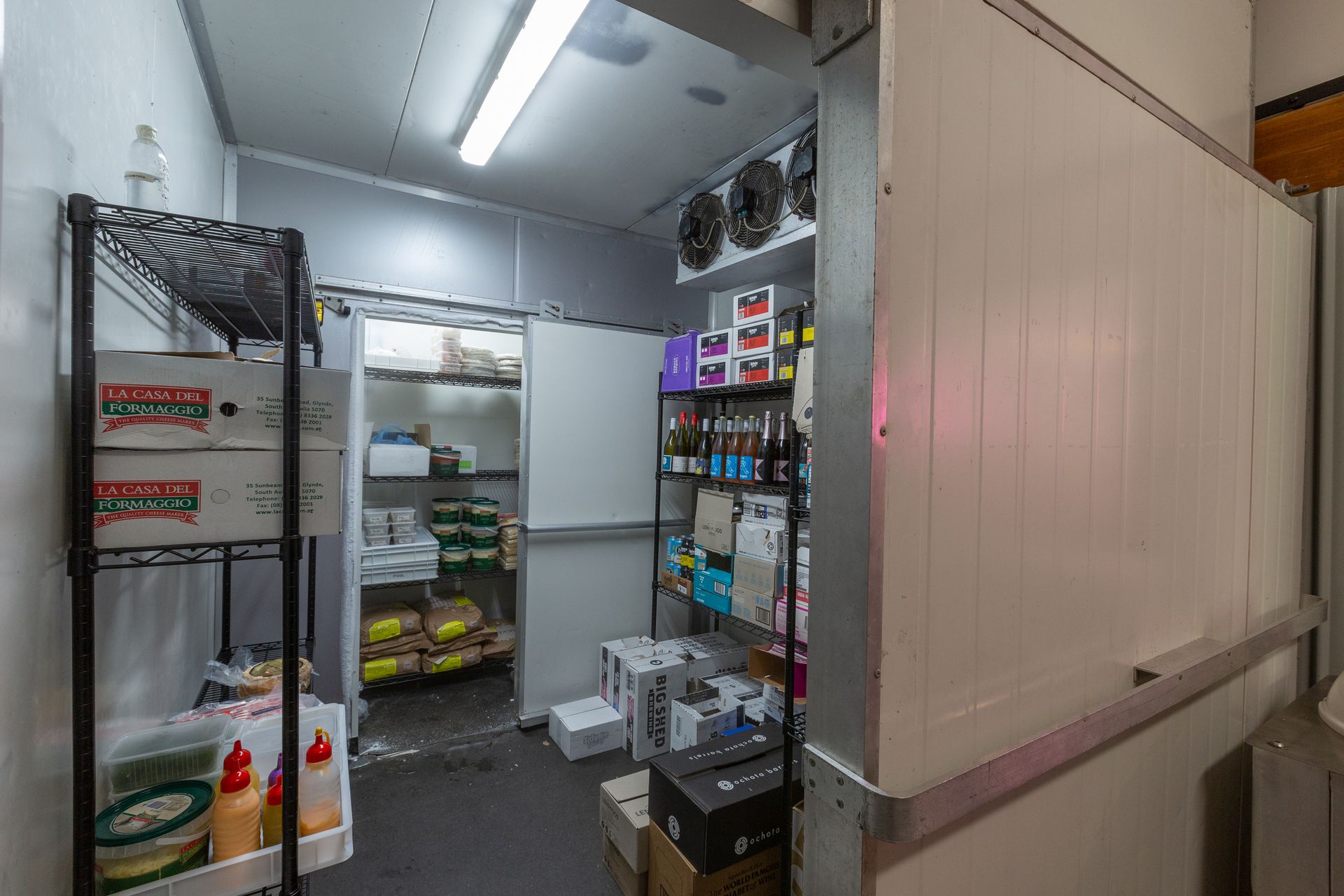 Takeaway servery title includes commercial compliant kitchen within 8 x 10m custom built flatlined panelled shed. Walk in cool room and freezer with extensive shelving, servery window and main parking area.