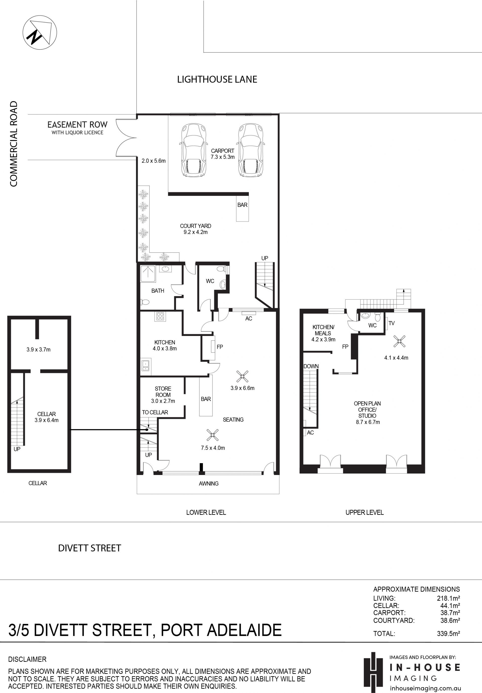 - Total Lettable Area of approximately 340sqm made up of the main front bar/ seating area, commercial-grade kitchen, courtyard beer garden, large cellar and upstairs open plan studio.