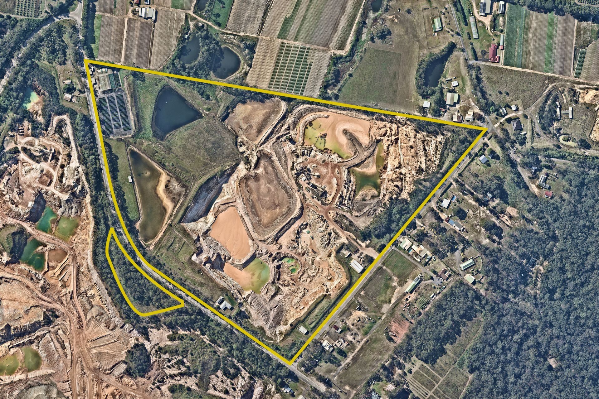 Features: - Approximately 30 hectares of freehold property over three titles - Strategic northwest Sydney location and only 62 km from Sydney CBD - Sand extraction quarry with landfill and soil recycling approval - Dual road frontage with access to the Old Northern Road - First-stage landfill capacity of four million tonnes (approx) - Equipped with a residence, site offices, and a workshop - Established customers, flood-free location, and land banking potential - Rare and unique offering, apply in confidence