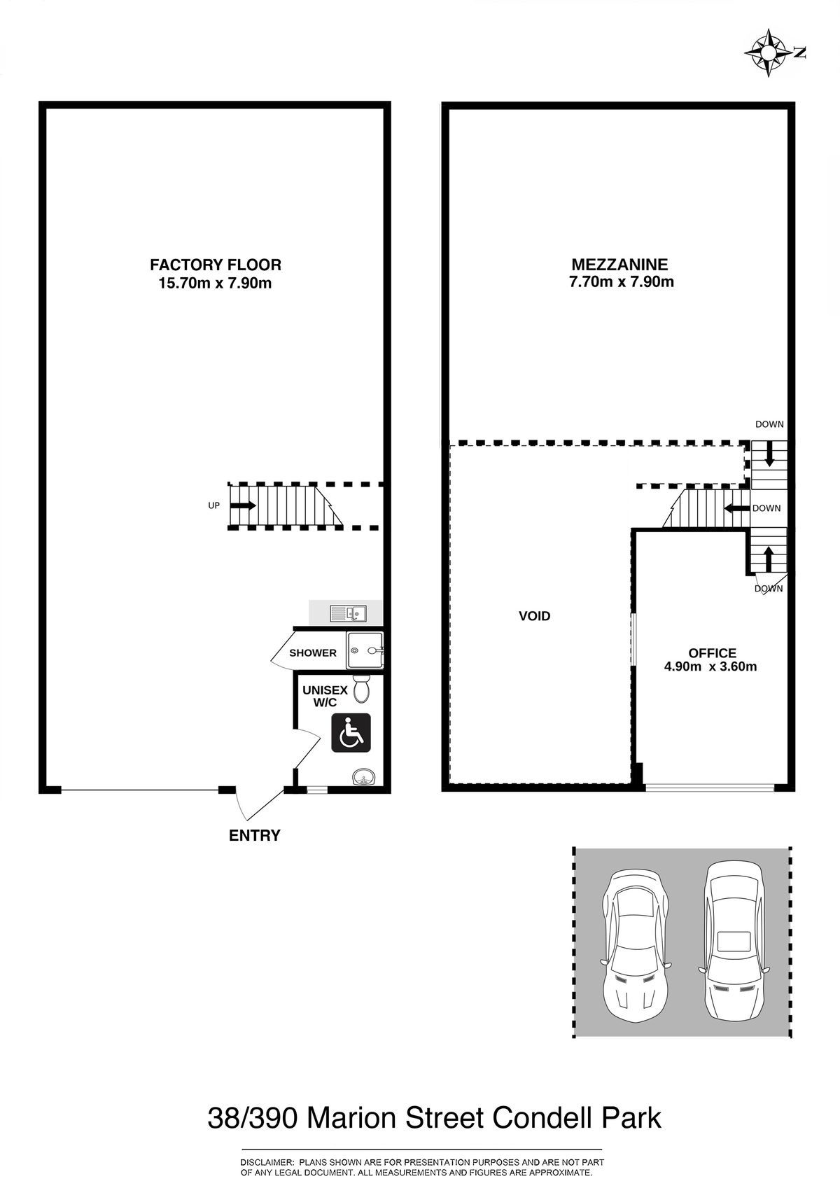-Two (2) car spaces on title