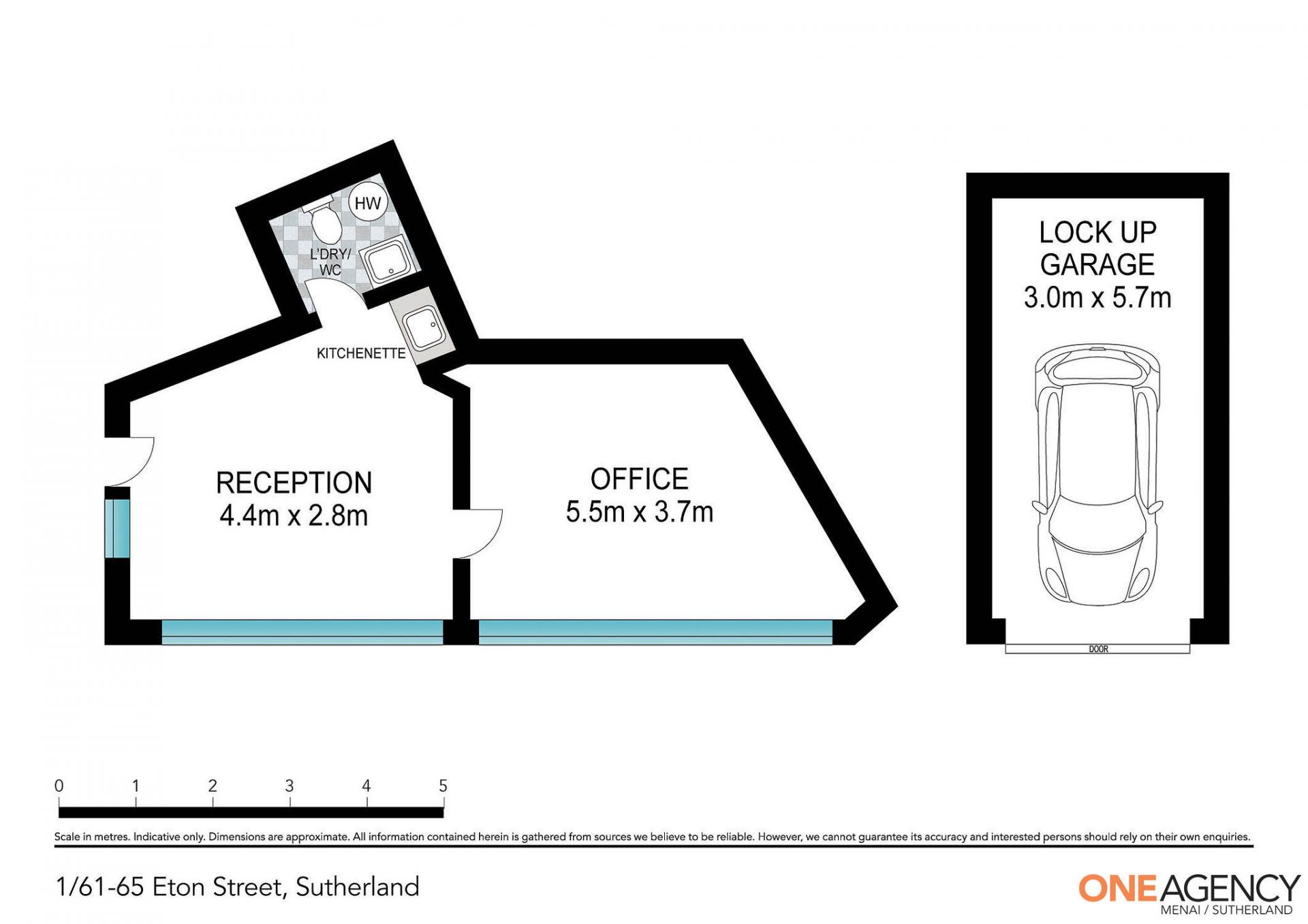 - Small ground-level office suite: 30sqm