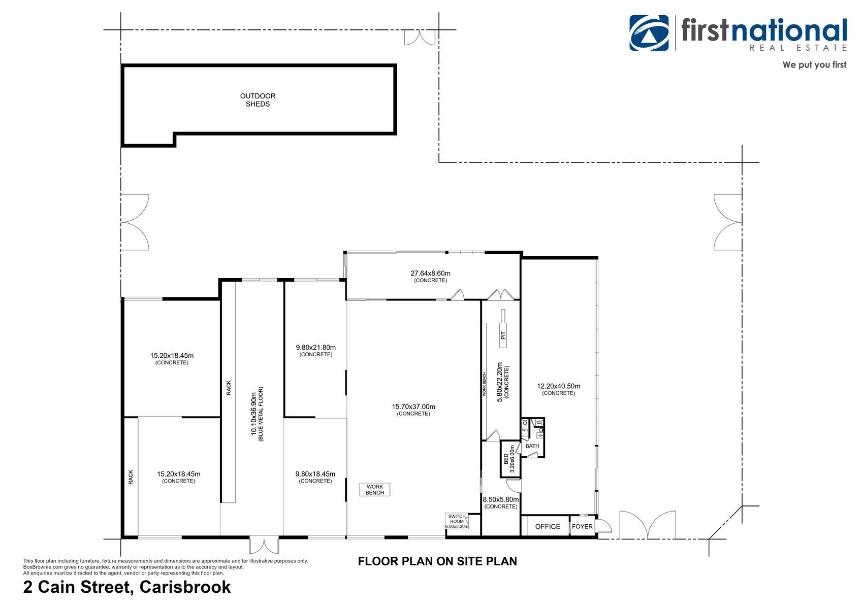 Additional features include: three phase power to main and outdoor shed, an office/foyer, a bathroom with a toilet and urinal, a wash bay, and a mechanic’s pit. Fully serviced.