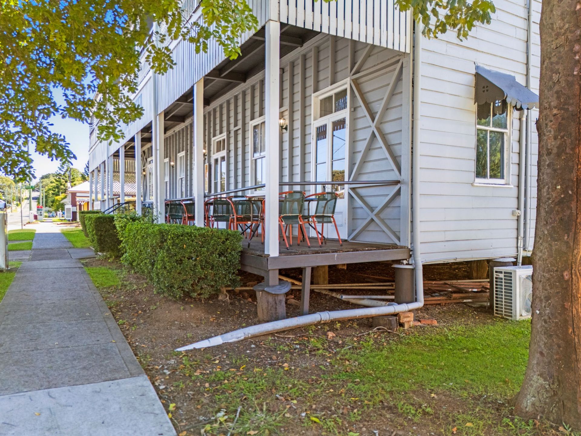 • The two storey building, with corrugated iron hipped roof is located on a high profile corner position in the centre of the town.