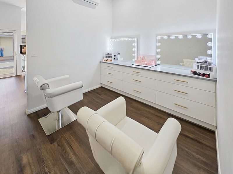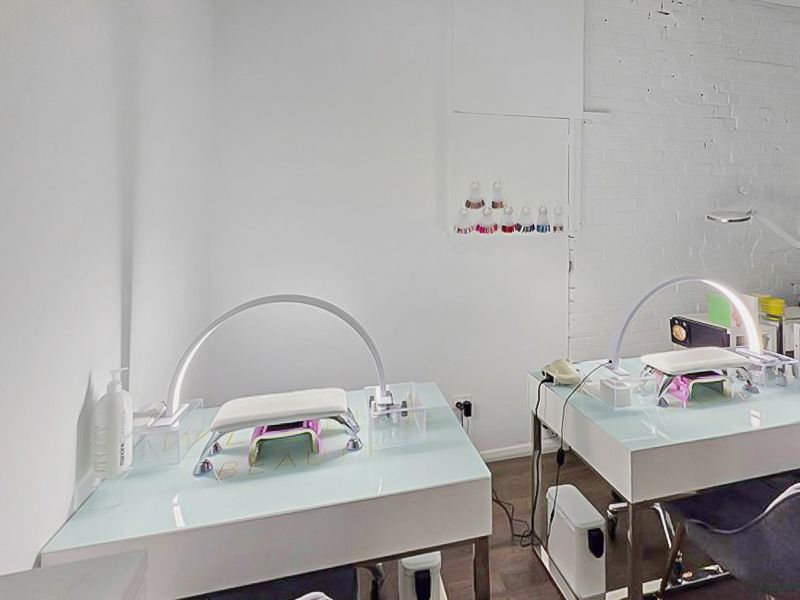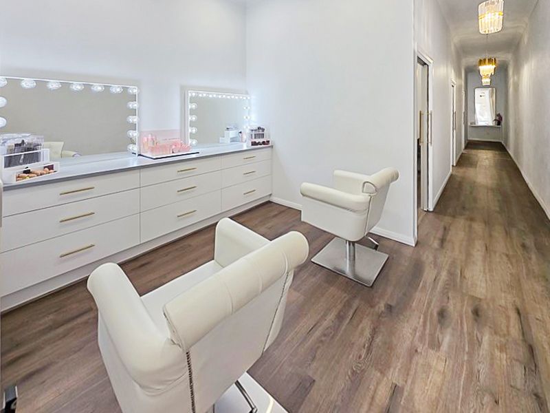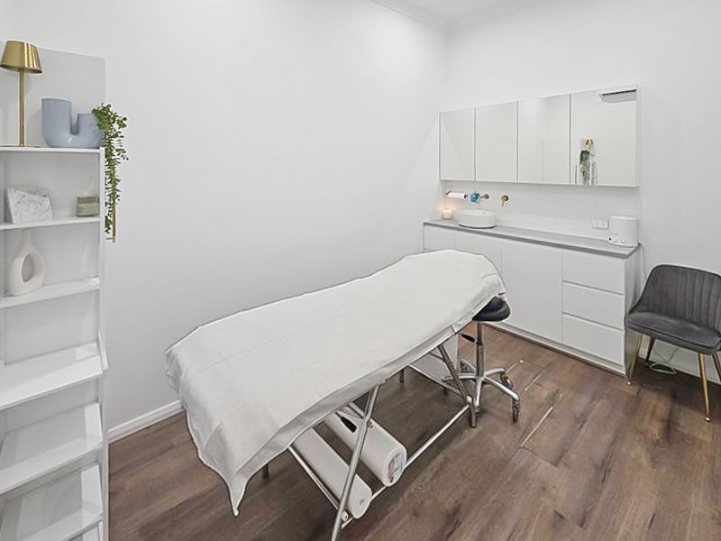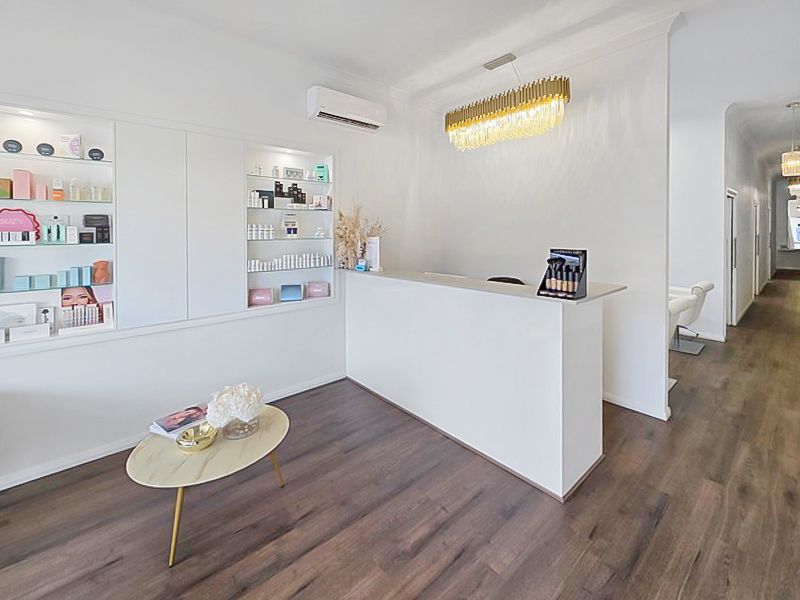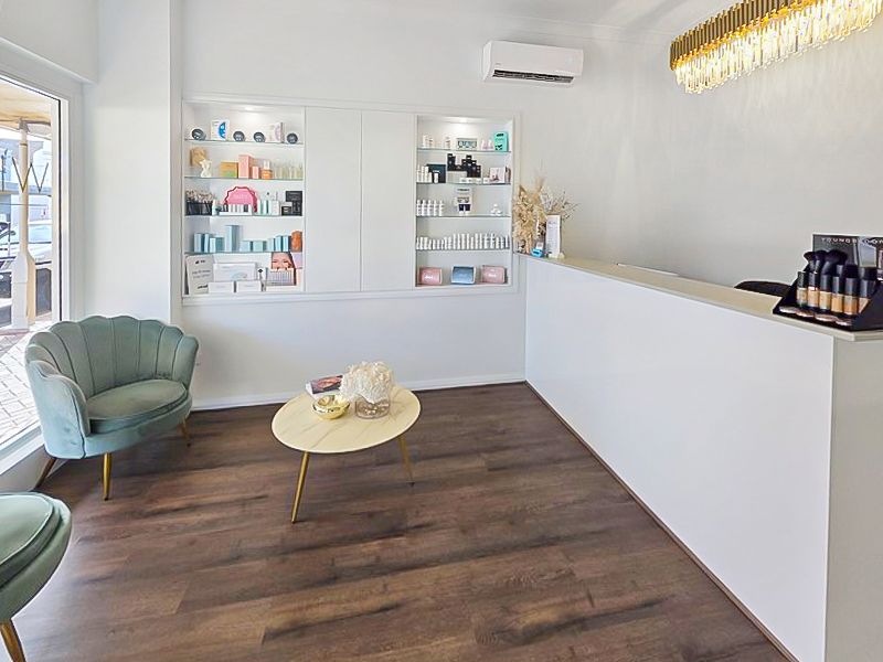 The welcoming reception area enjoys a sunny northerly aspect, filling the space with natural light. Inside, you’ll find a spacious make-up area, four designated treatment rooms, a zone for two nail technician tables, and a dedicated tanning booth.